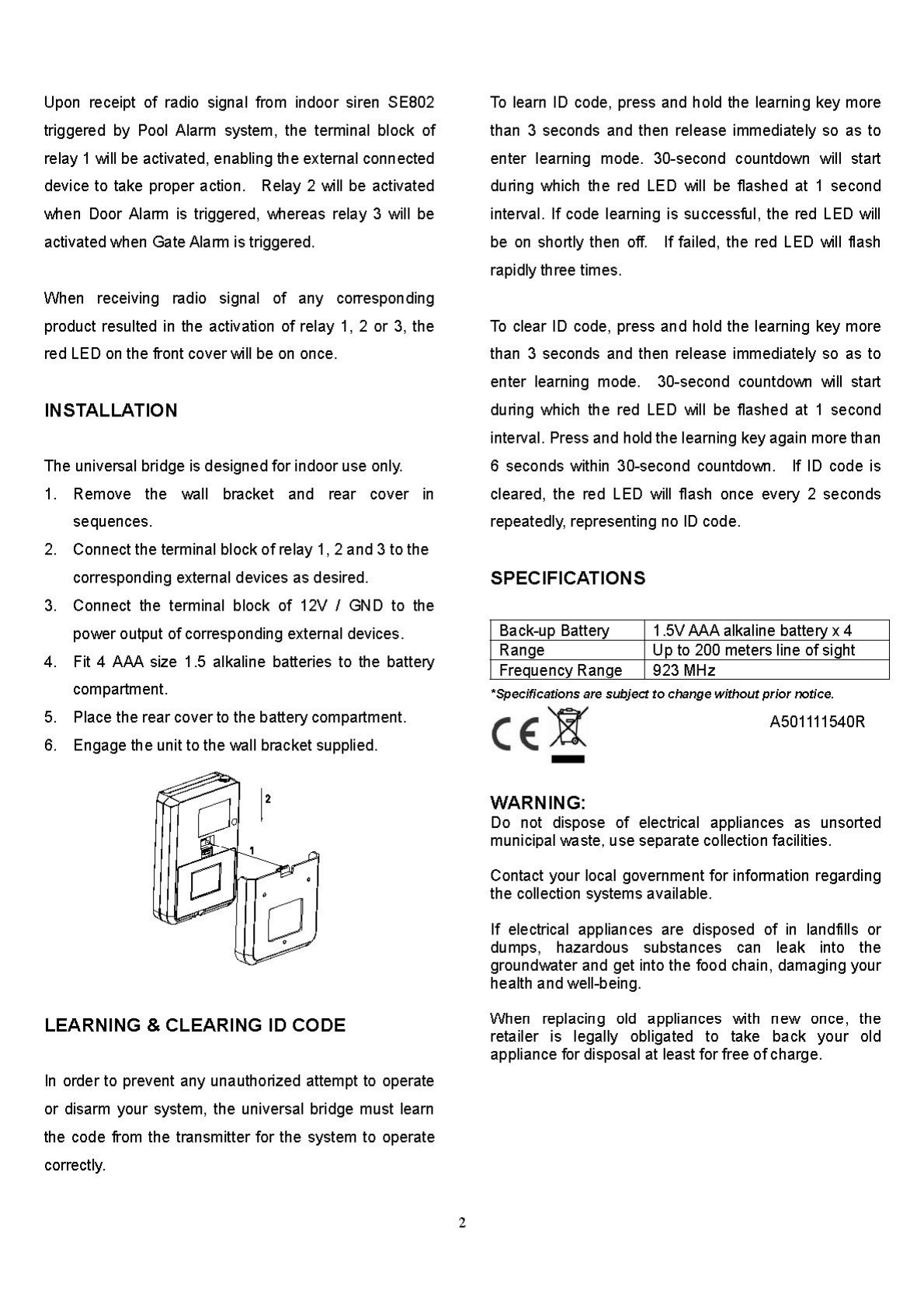 Everspring Industry Co SA808 WIRELESS UNIVERSAL BRIDGE User Manual SA808 2 UserMan