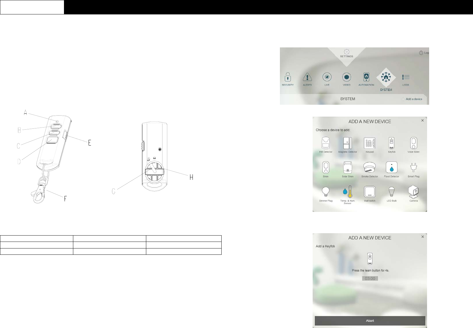 D  Disarm  E  Panic Switch   F  Key Chain Ring