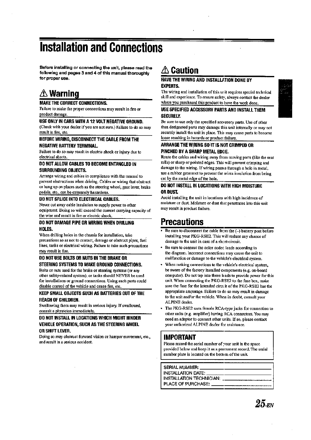 NOTE: THE MANUFACTURER IS NOT RESPONSIBLE FOR ANY RADIO OR TV