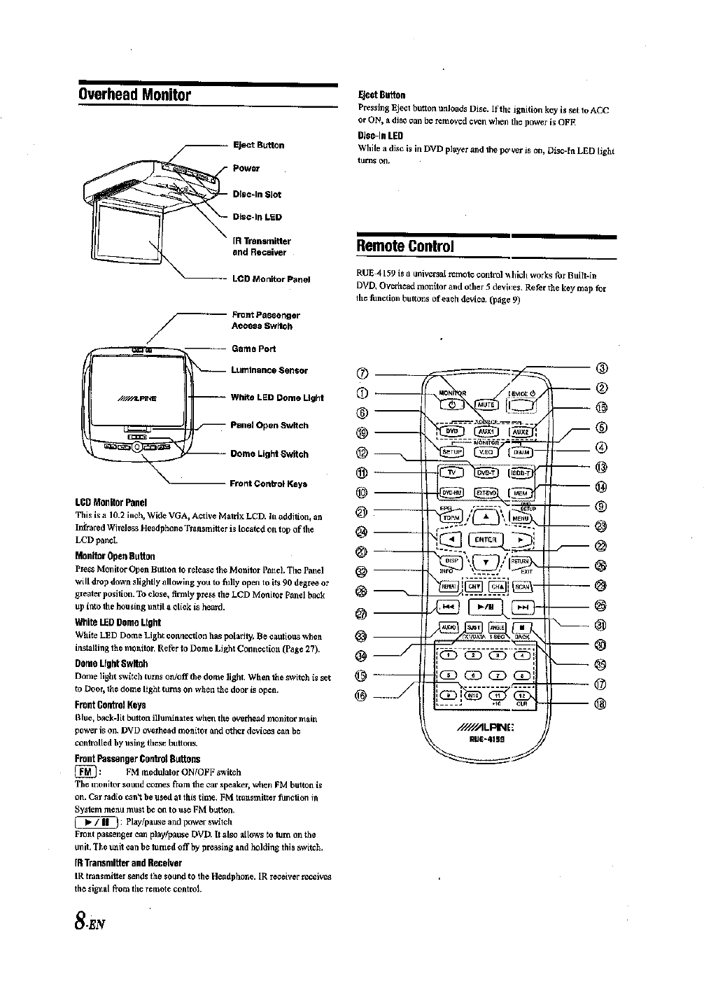 Evervictory Electronic Company Limited 10.2" Car Use Roof Mount LCD DVD Combo