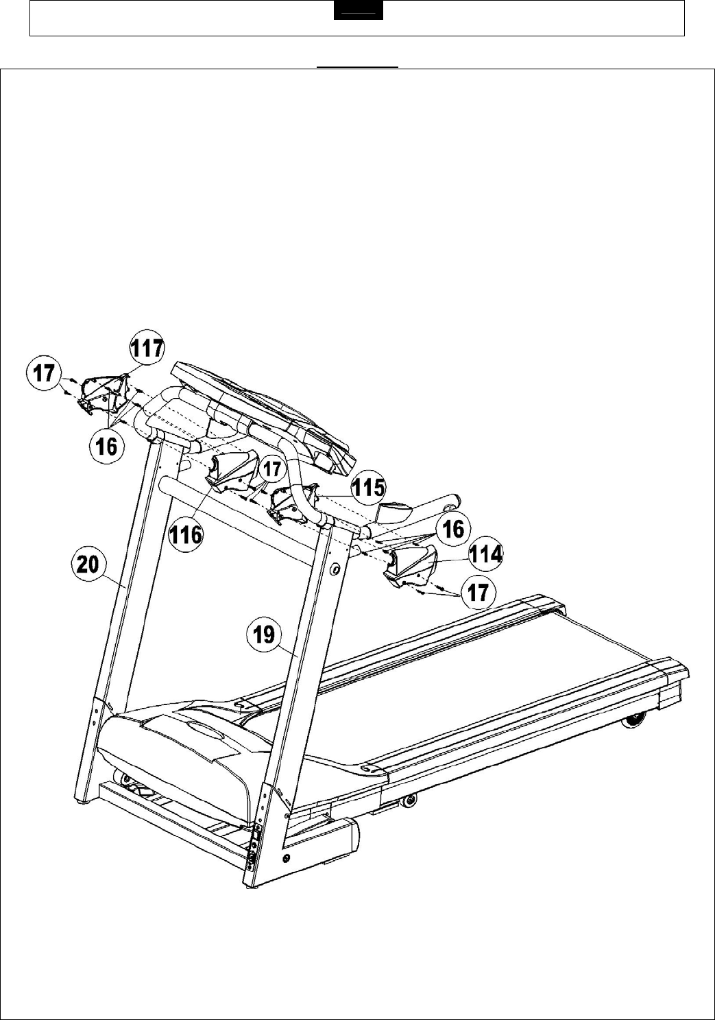 • Keep the treadmill indoors, away from moisture and dust. Do not put the treadmill in a garage or covered