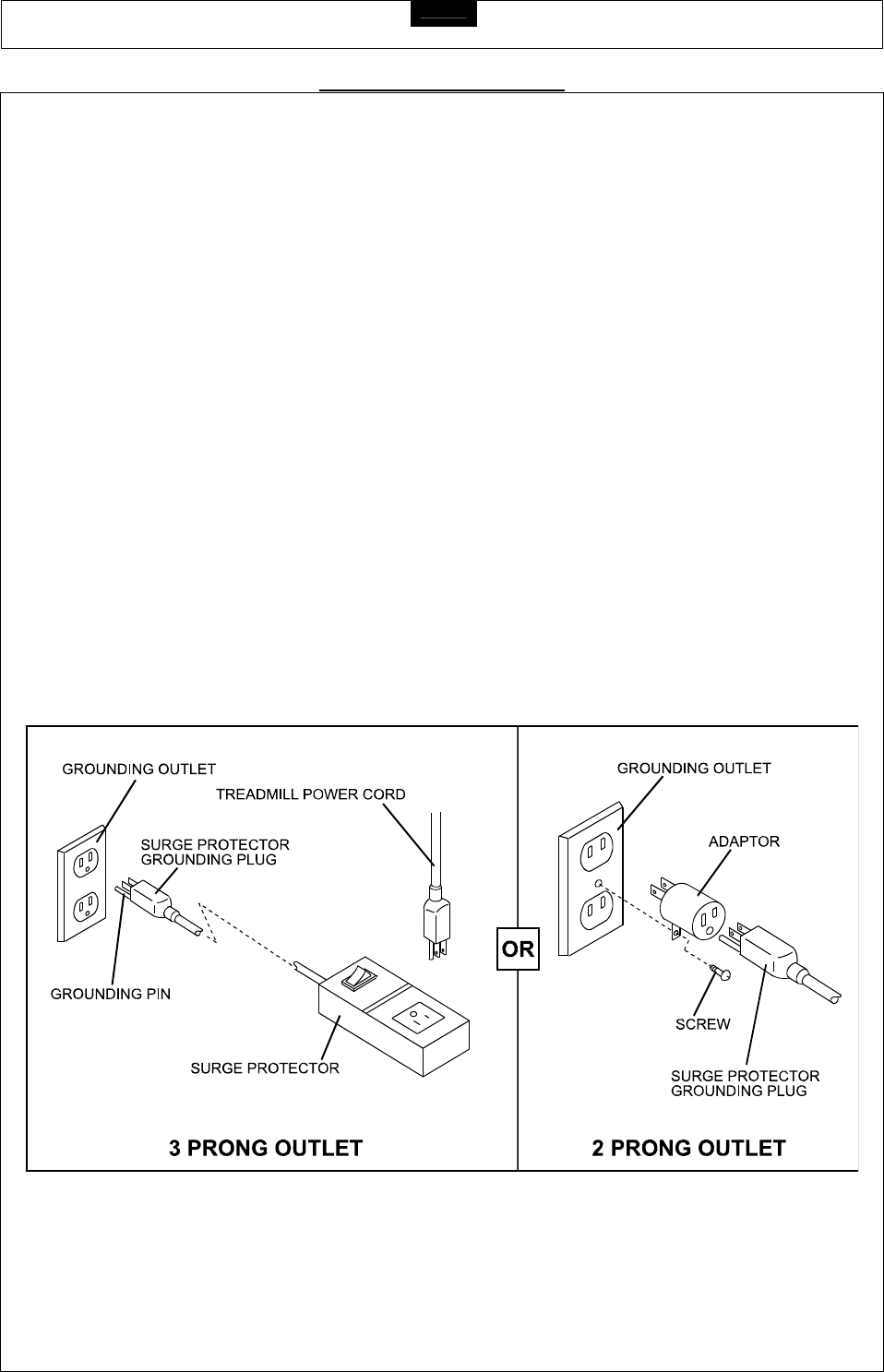 off. To reduce the possibility of treadmill damage, always use a surge protector (not included) with your treadmill.