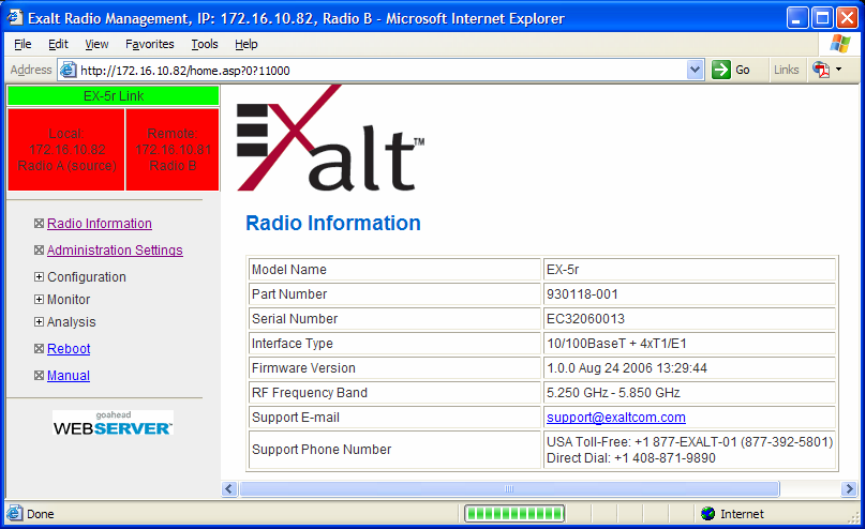 Exalt Wireless 105P25M 5 GHz Point to Point Fixed Link Radio Module User Manual r manual LMAfinal