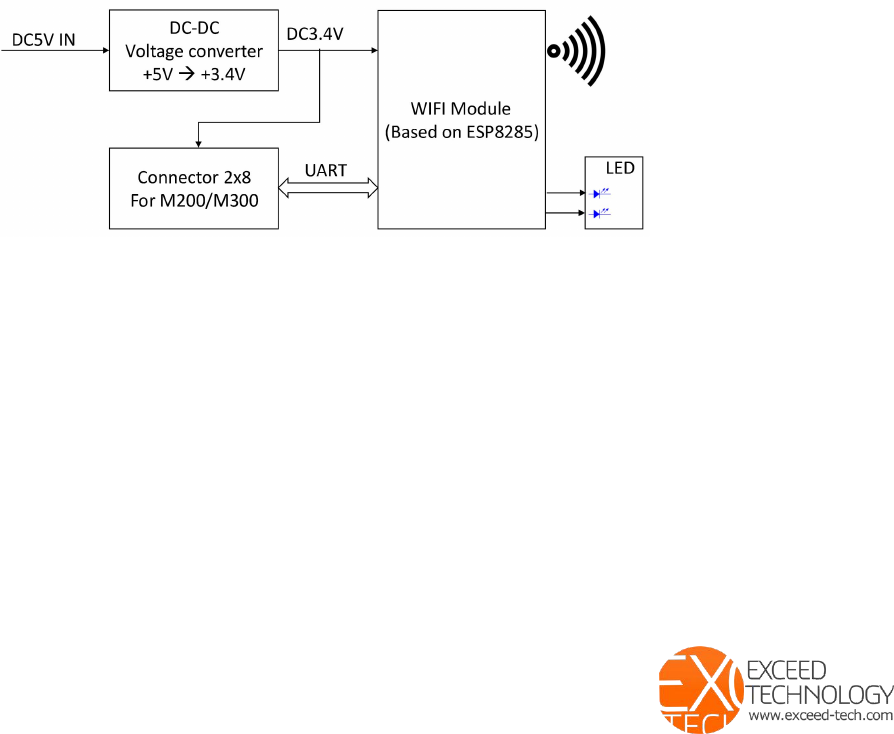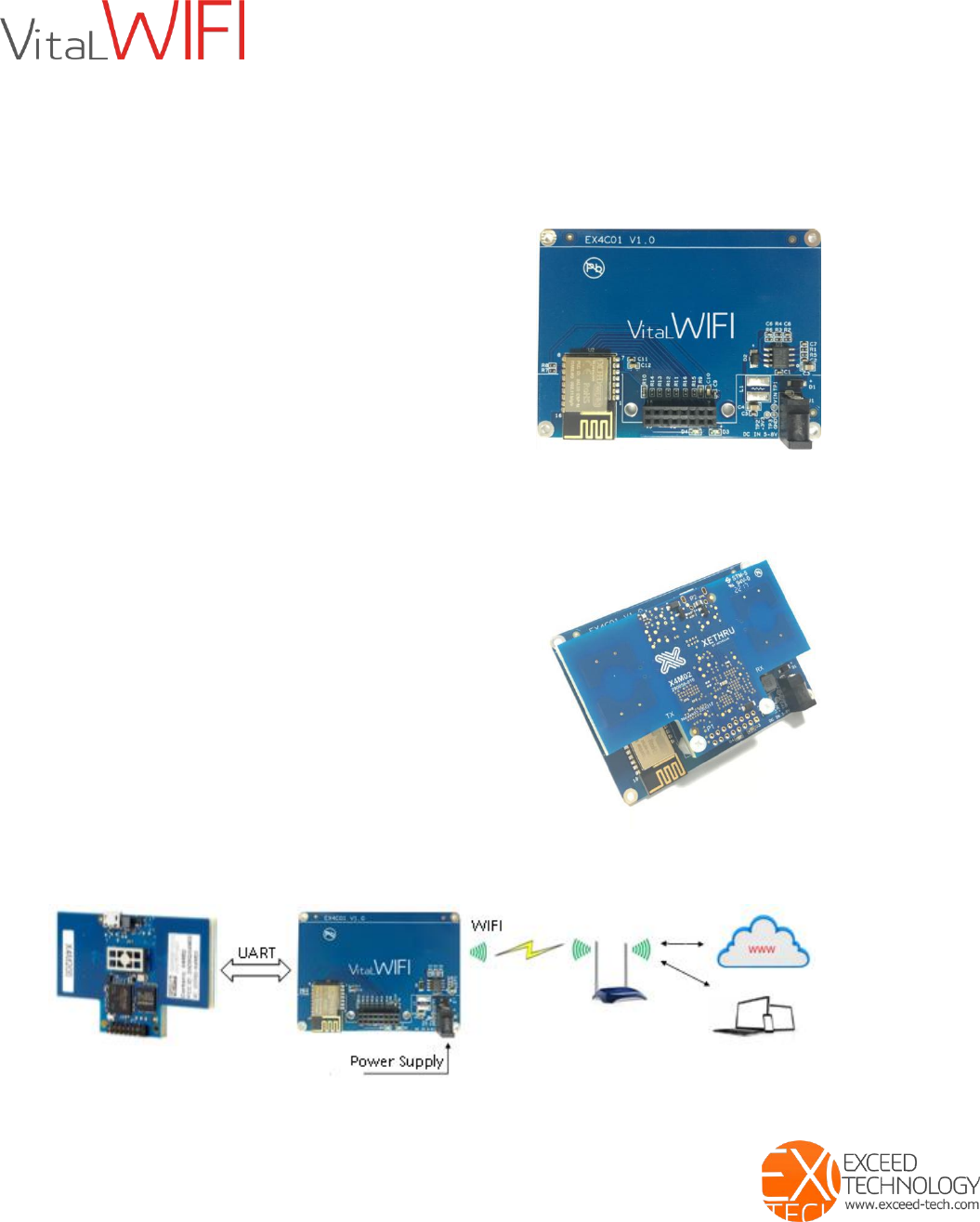VitalWIF(EX4C01) is made up of DC-DC voltage converter, WIFI module,connectors and LED.