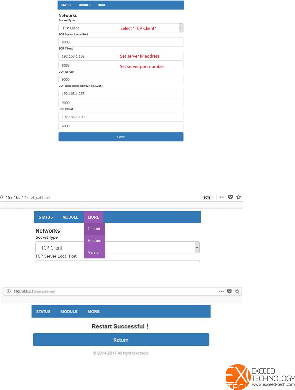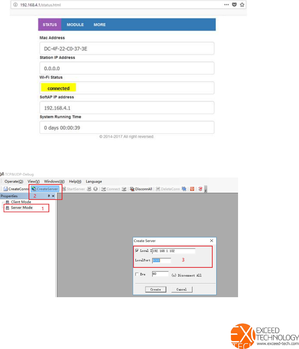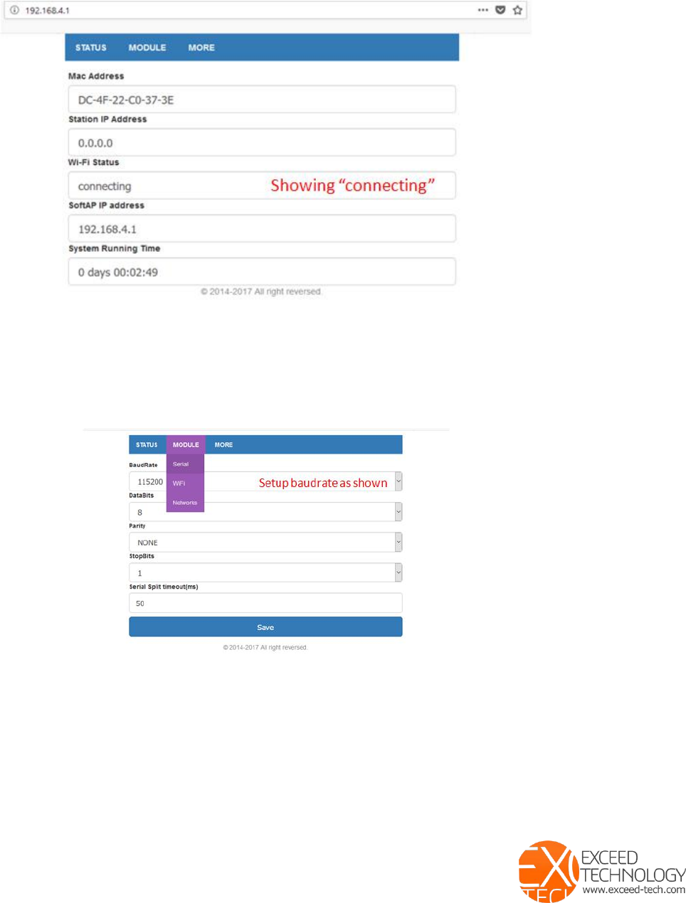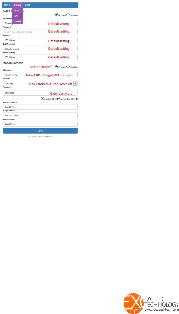 Exceed WIFI module access and set up.