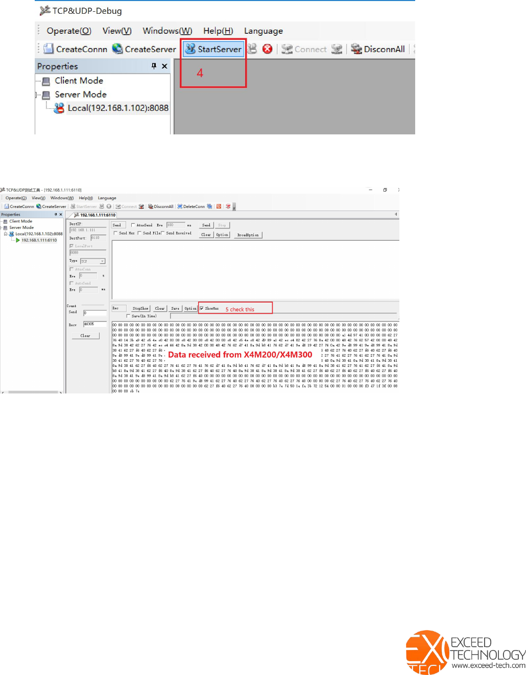 24.Click on ShowHex, to display the data in hex format. The content in the receiving