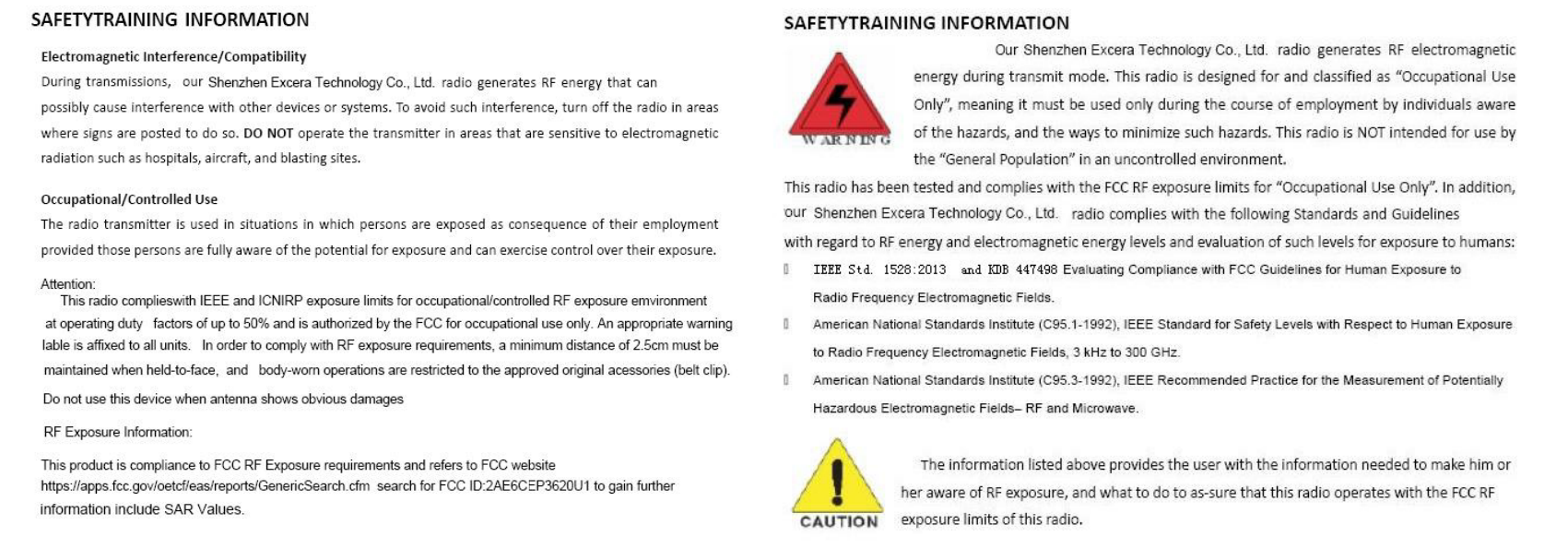 11.We and our distributors will offer safety/RF exposure trainings to the users after purchasing the devices.