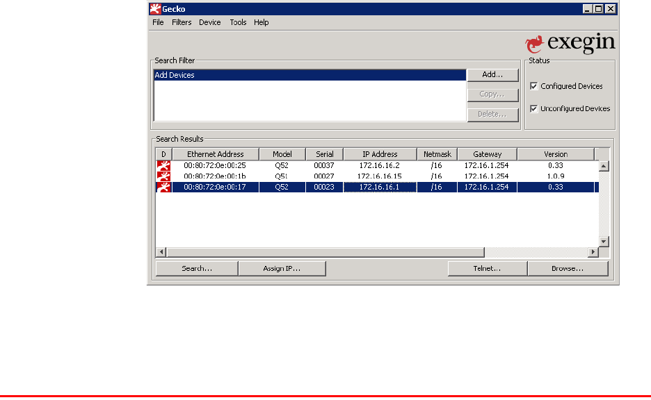 Gecko TCP/IP configuration utility provided with the Q52 ZigBee /