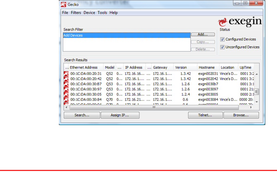 Gecko TCP/IP configuration utility provided with the Q53 ZigBee /