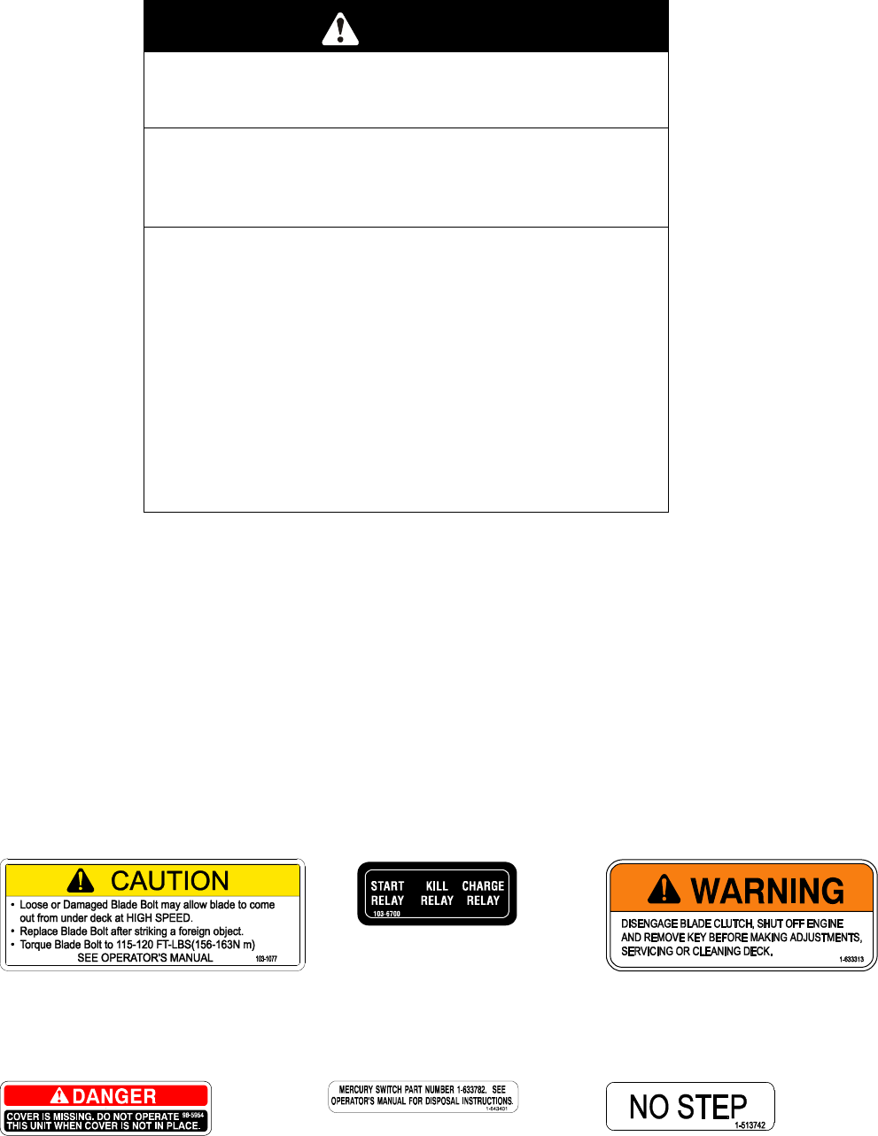 ♦ If mower deck becomes clogged, stop engine and wait for all