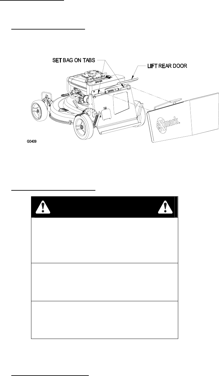 ♦ If mower deck becomes clogged, stop engine, wait for all moving