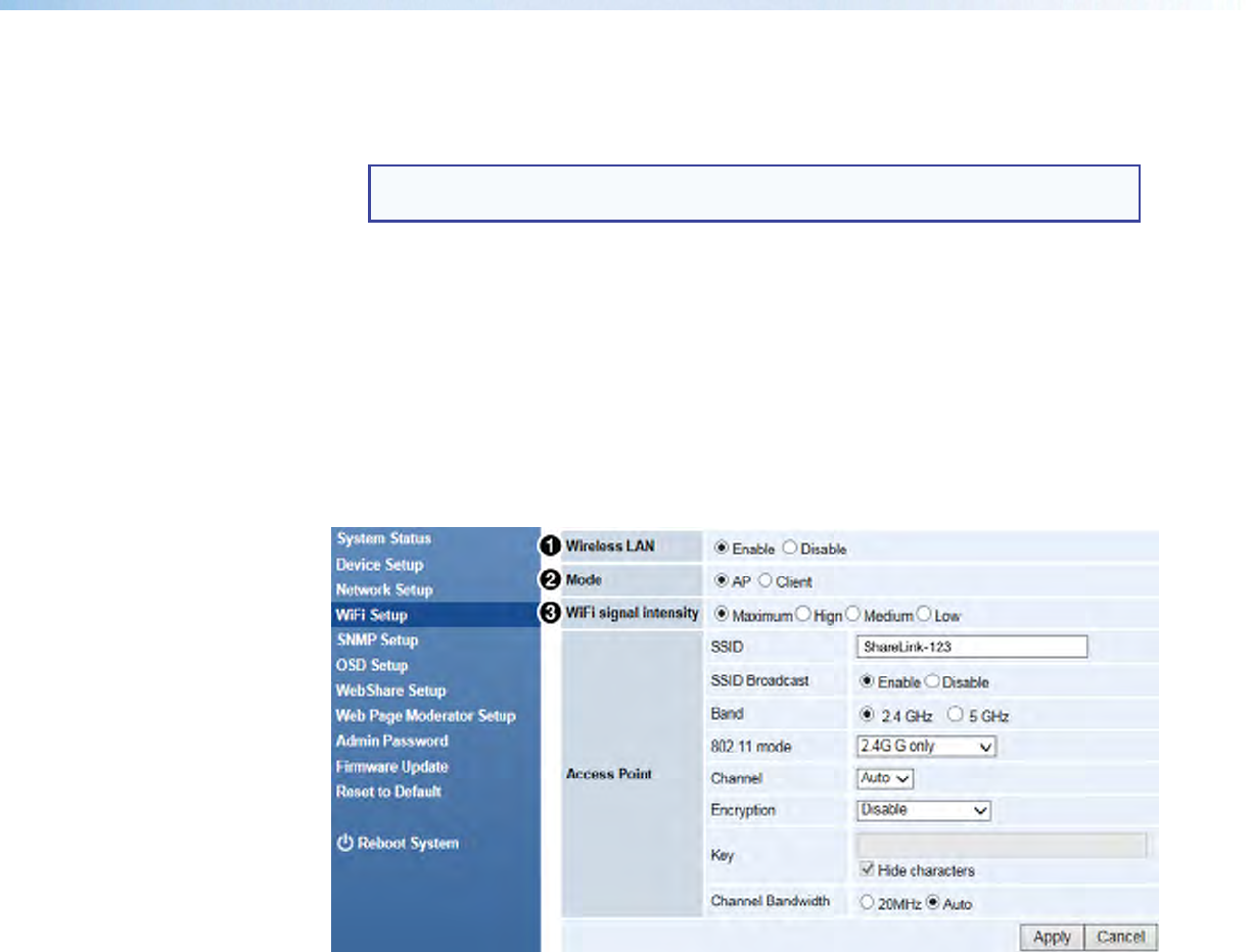 You may select a different Wi-Fi channel from the drop-down menu (figure 56, 2). The table