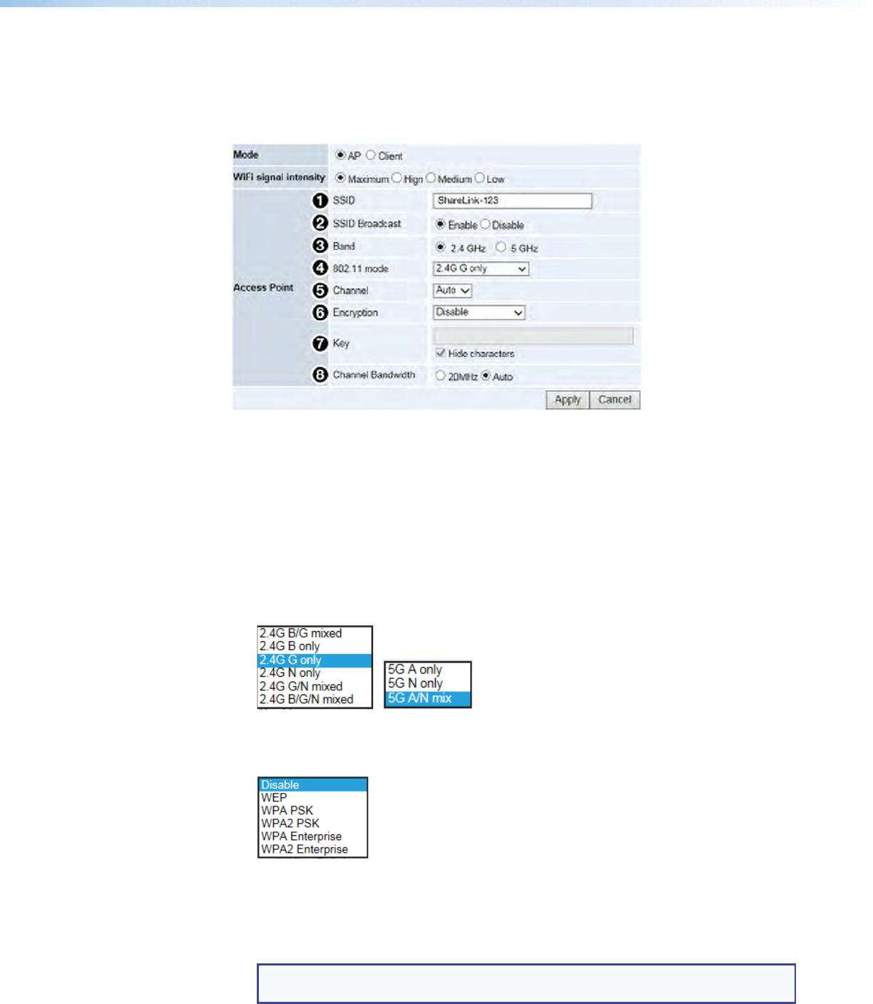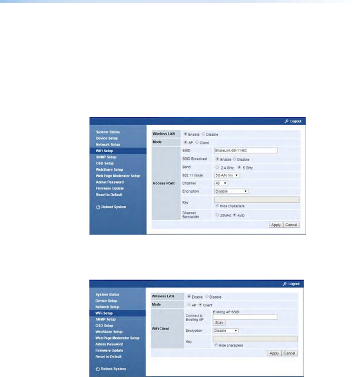 Figure 56. WiFi Setup Panel (5 GHz band)