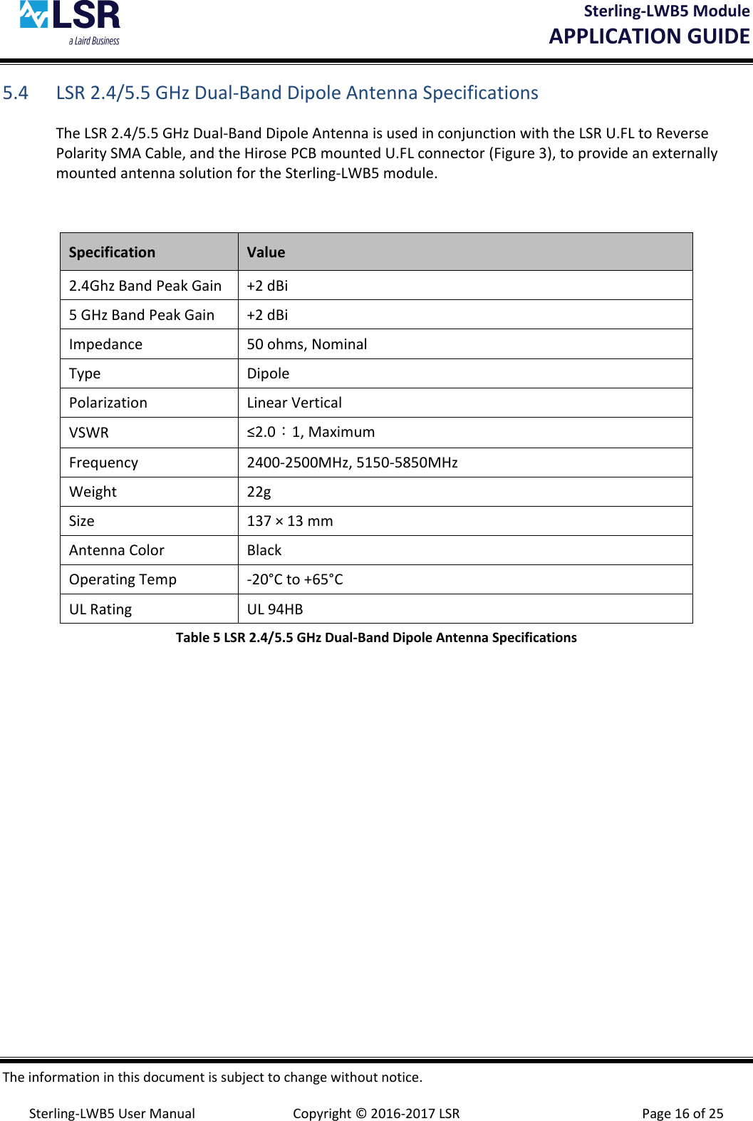 Laird Technologies Sterling-LWB5 Users Manual