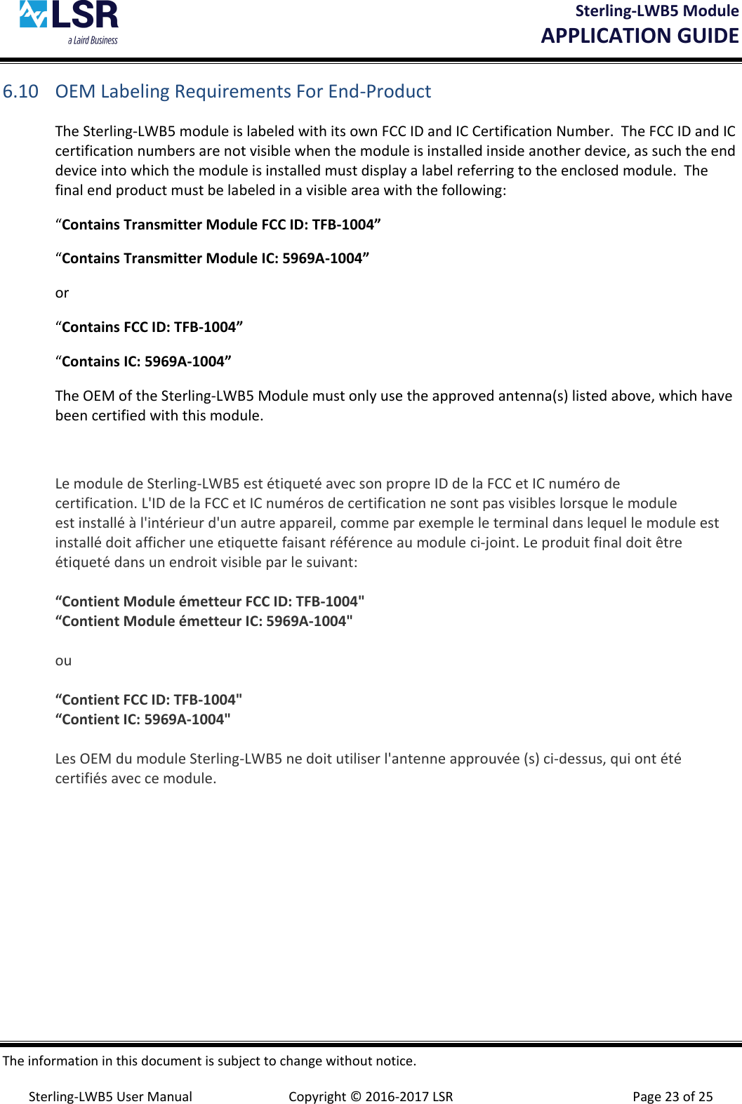 Ezurio 1004 Sterling-LWB5 User Manual