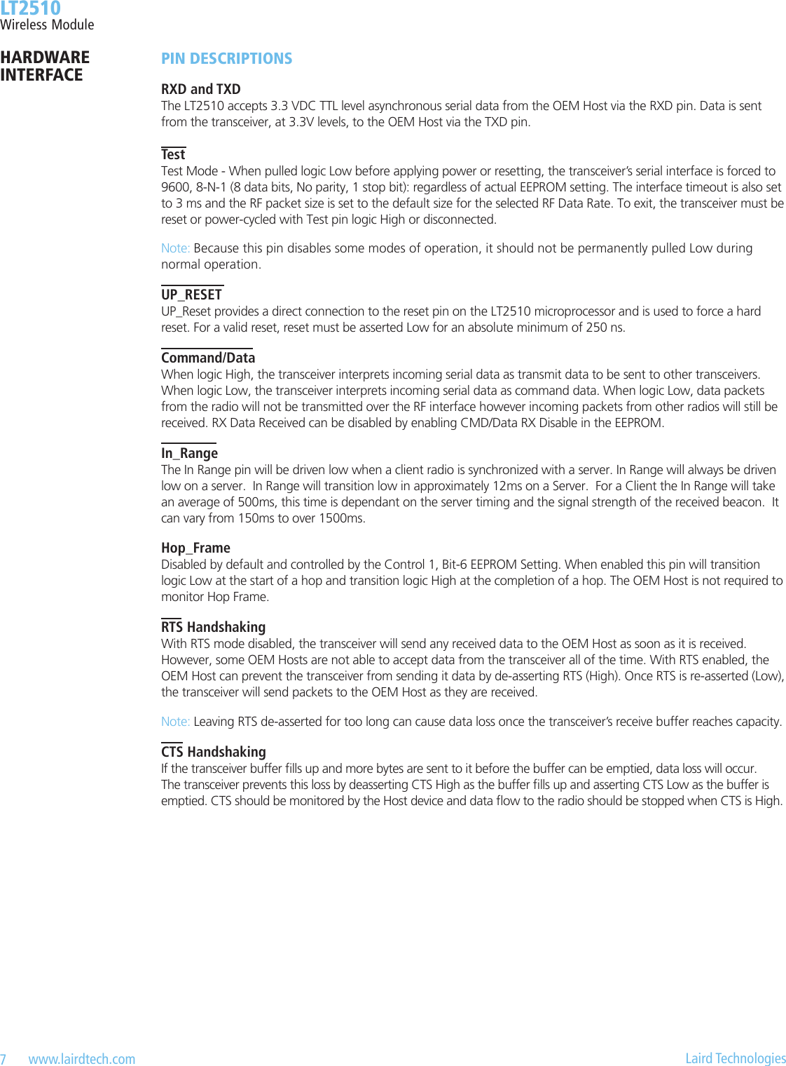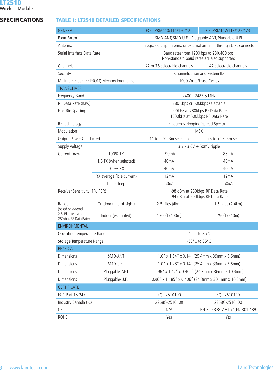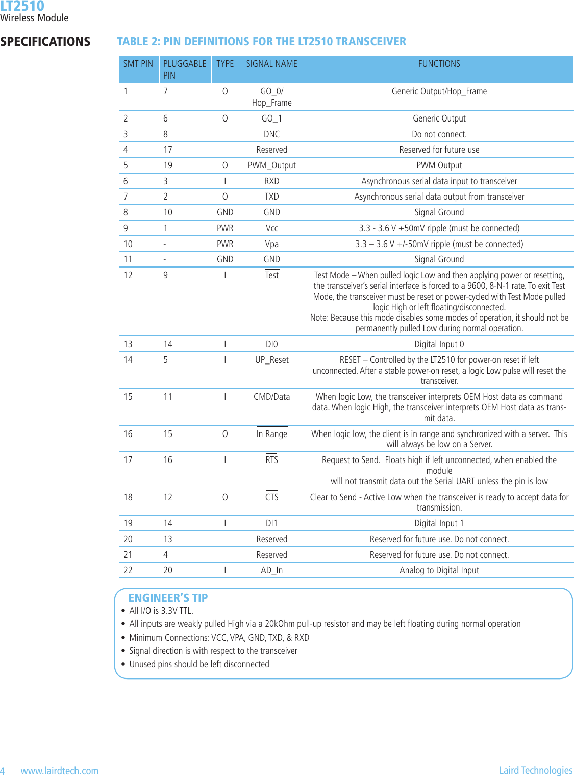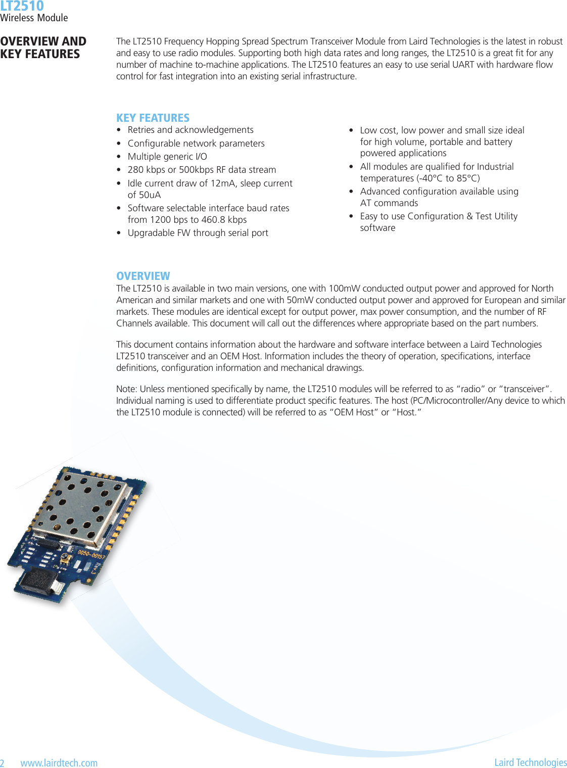 Ezurio 2510100P FREQUENCY HOPPING SPREAD SPECTRUM TRANSCEIVER User Manual