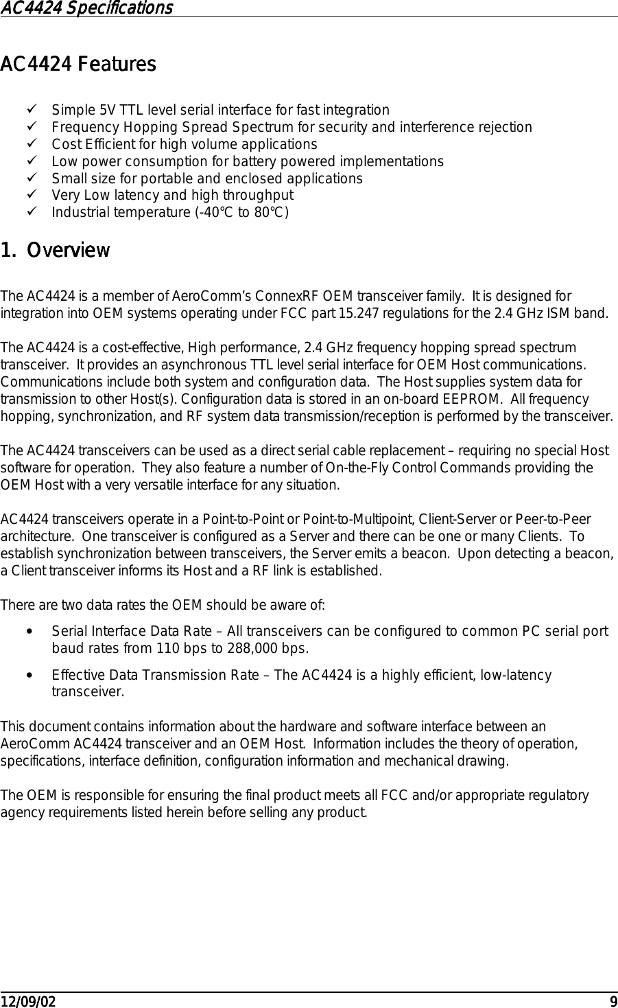 Ezurio AC4424-100 RF Transceiver Module User Manual AC4424
