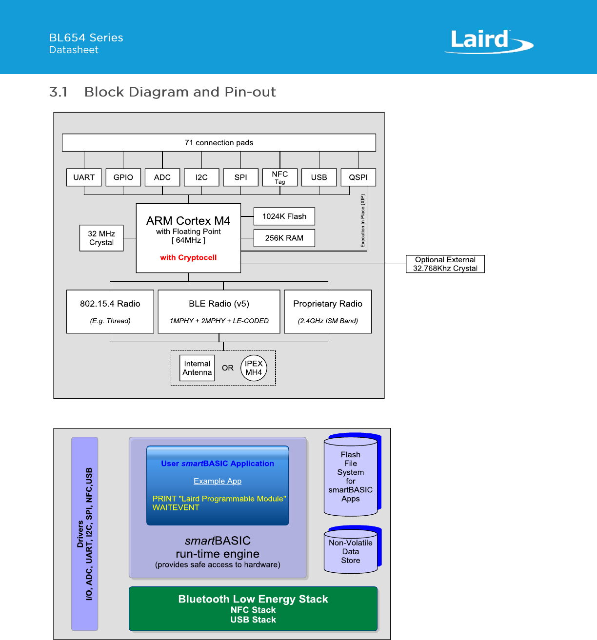 Note: If using the BL654 with Laird Firmware and smartBASIC script, you can skip “Controller Subsystem”, “Host