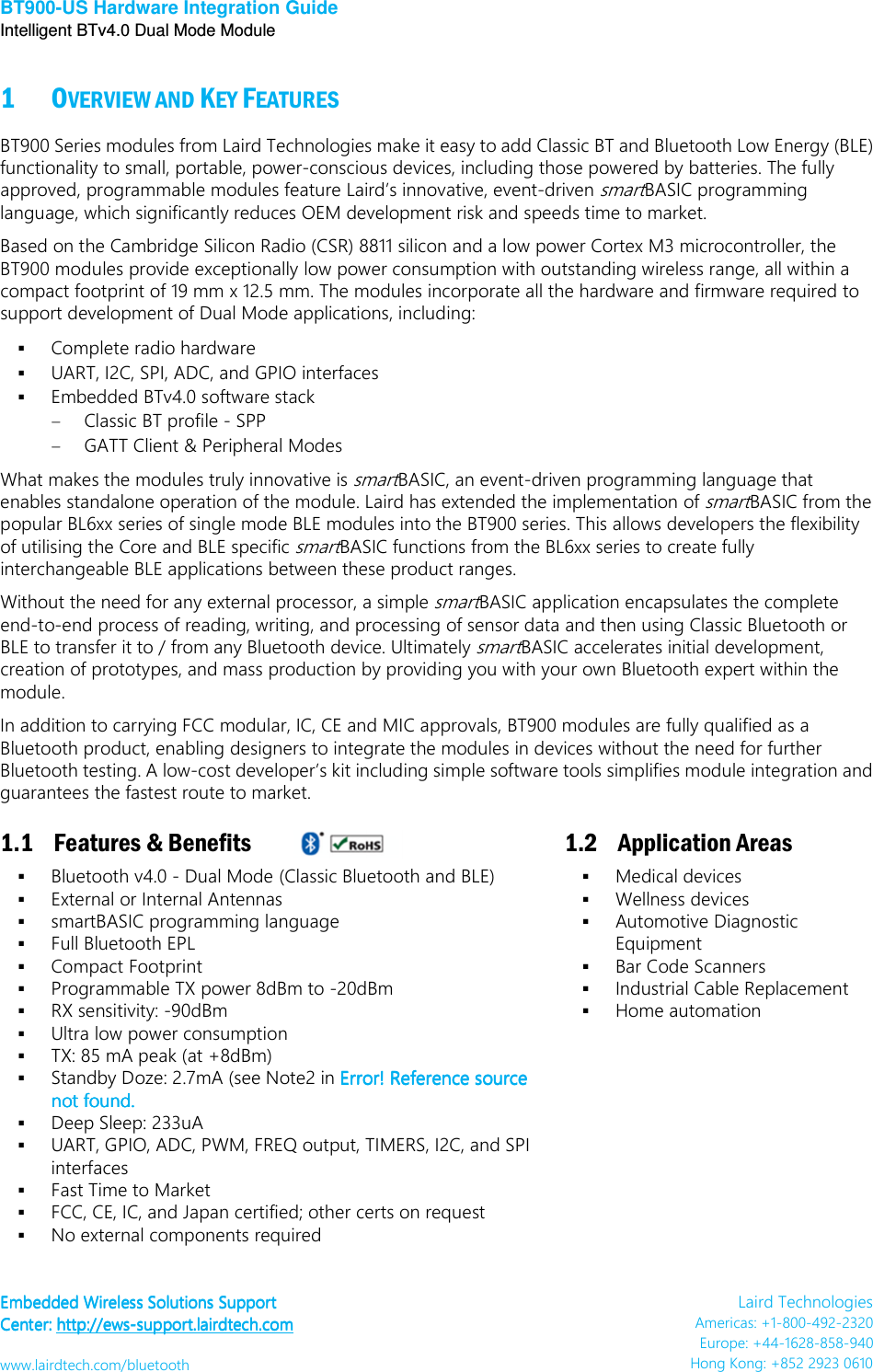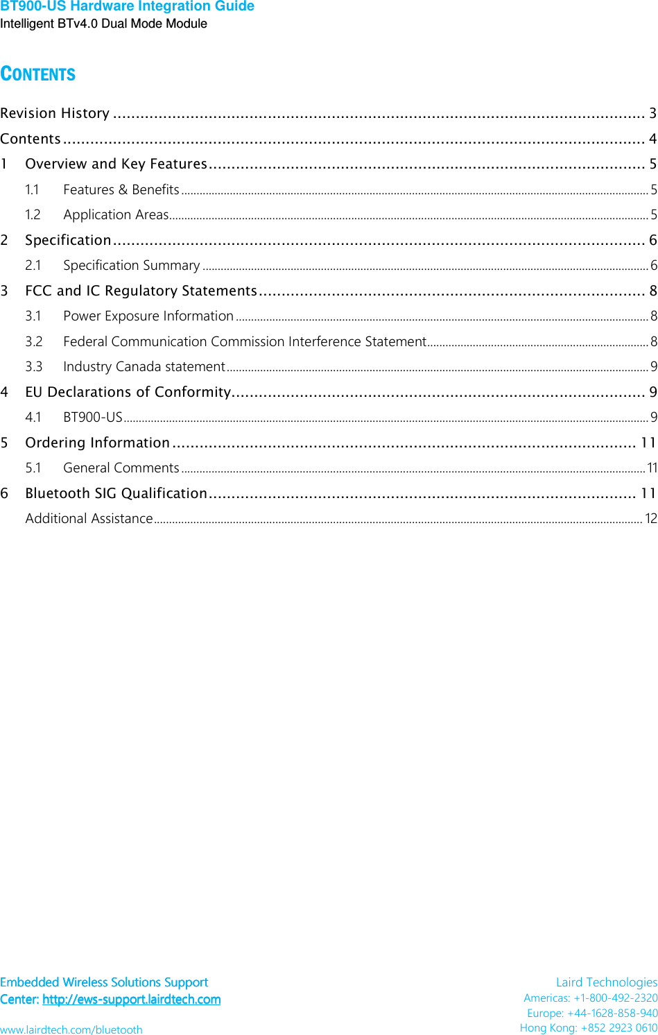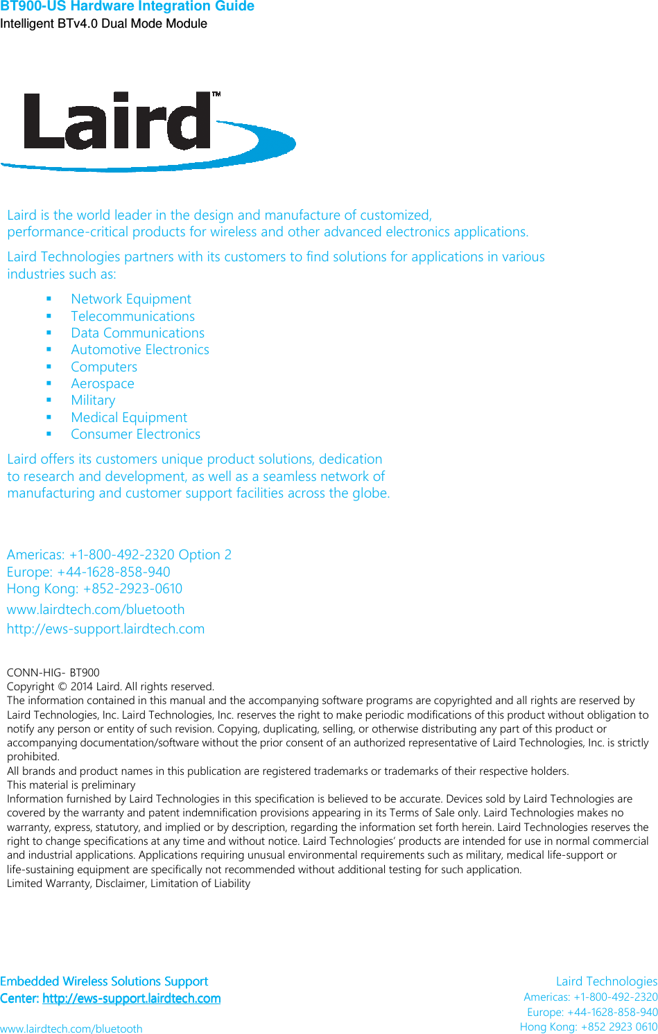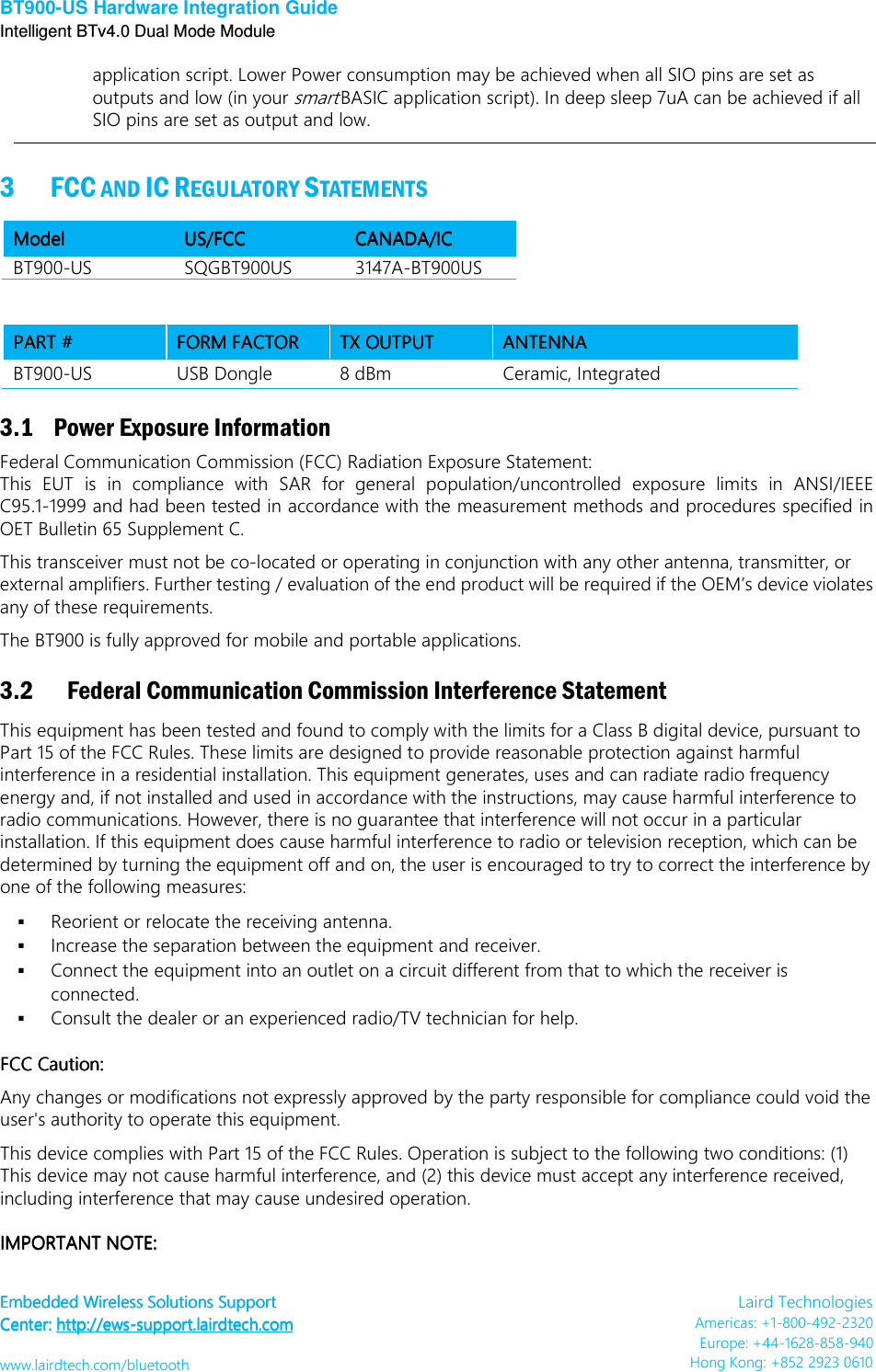Laird Technologies Intelligent BT4.0 Dual Mode USB Dongle BT900 US 1 0 Manual rev2