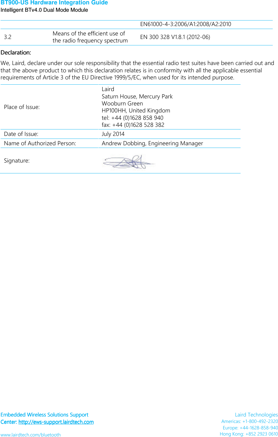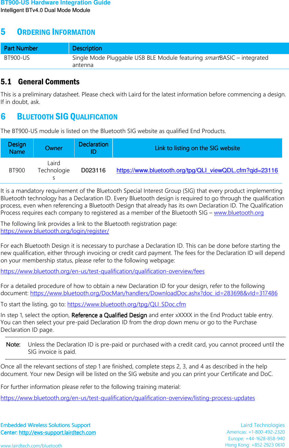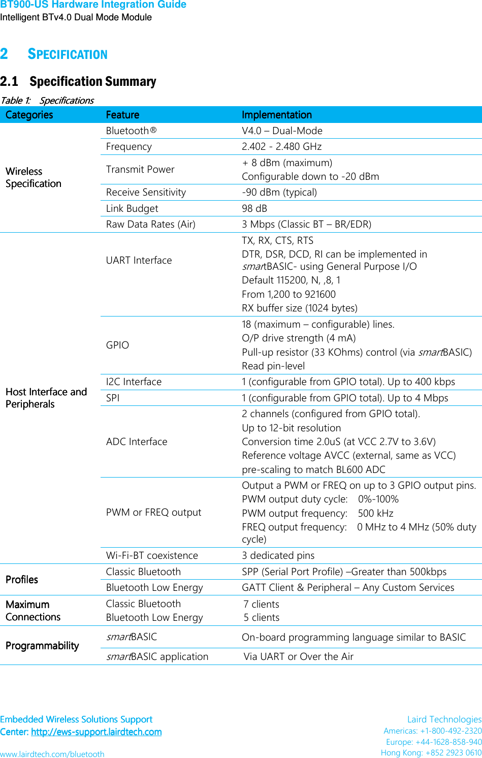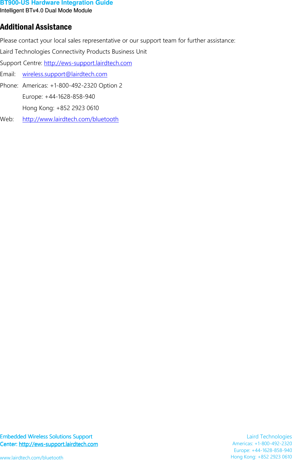 Laird Technologies Intelligent BT4.0 Dual Mode USB Dongle BT900 US 1 0 Manual rev2