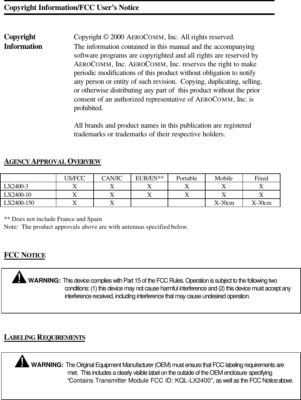 AeroComm Corporation LX-2400-150 exb22