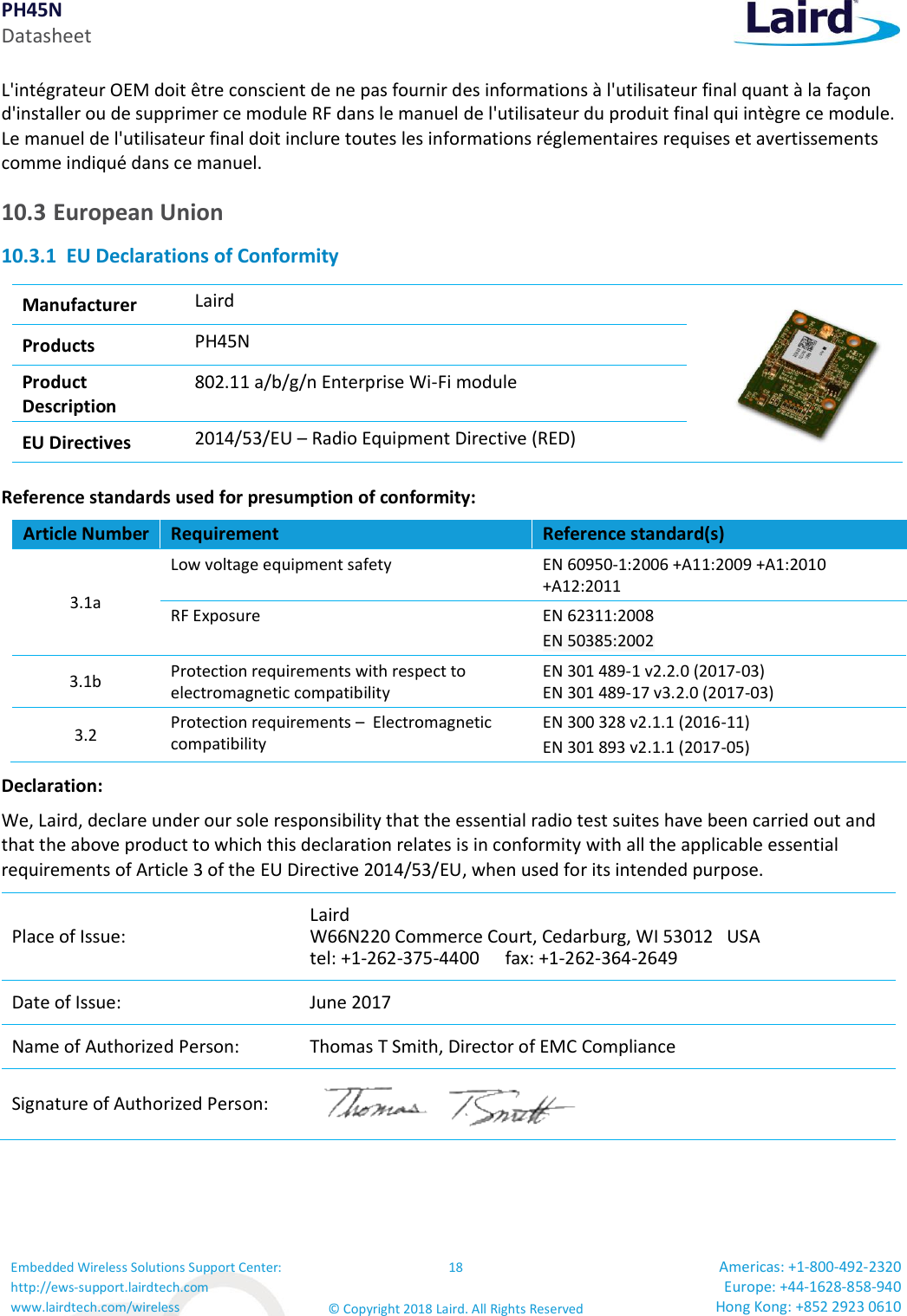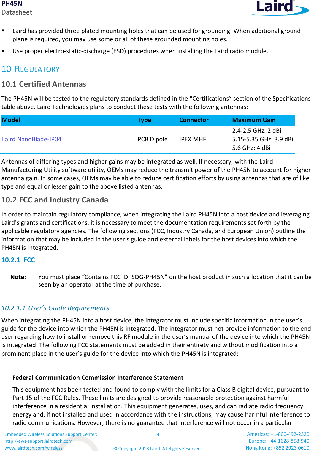 Ezurio PH45N 802.11a/b/g/n module User Manual