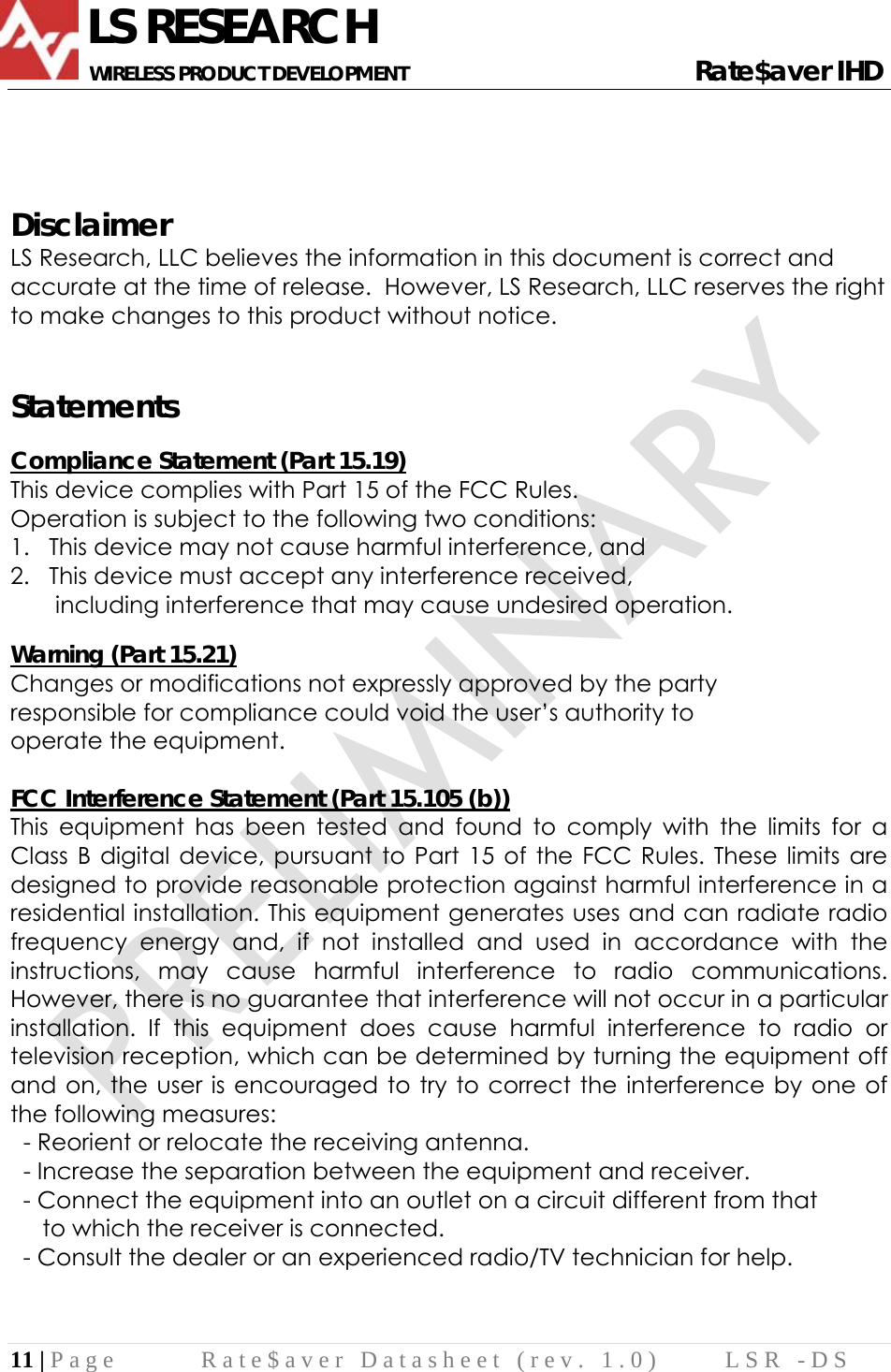 LS Research, LLC Wireless Electric Meter Monitor Manual