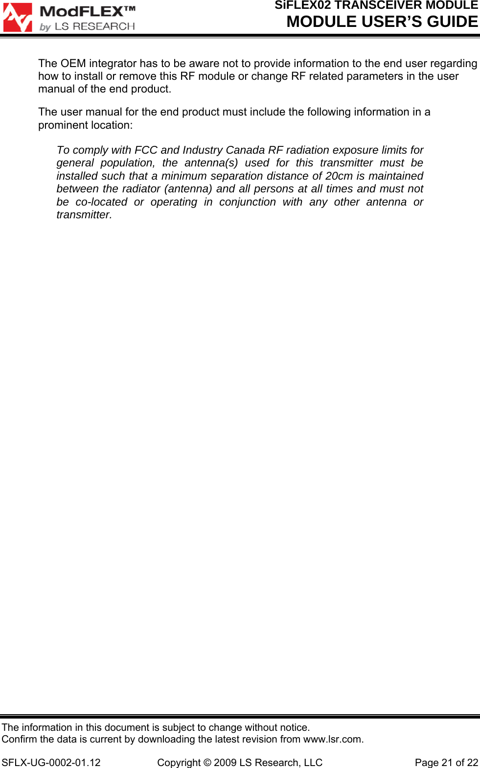 Ezurio SIFLEX2 Modular Transmitter User Manual