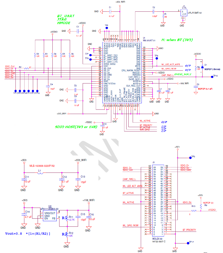 SDIO (Secure Digital Input/Output) interface. The radio operates in unlicensed portions of the 2.4