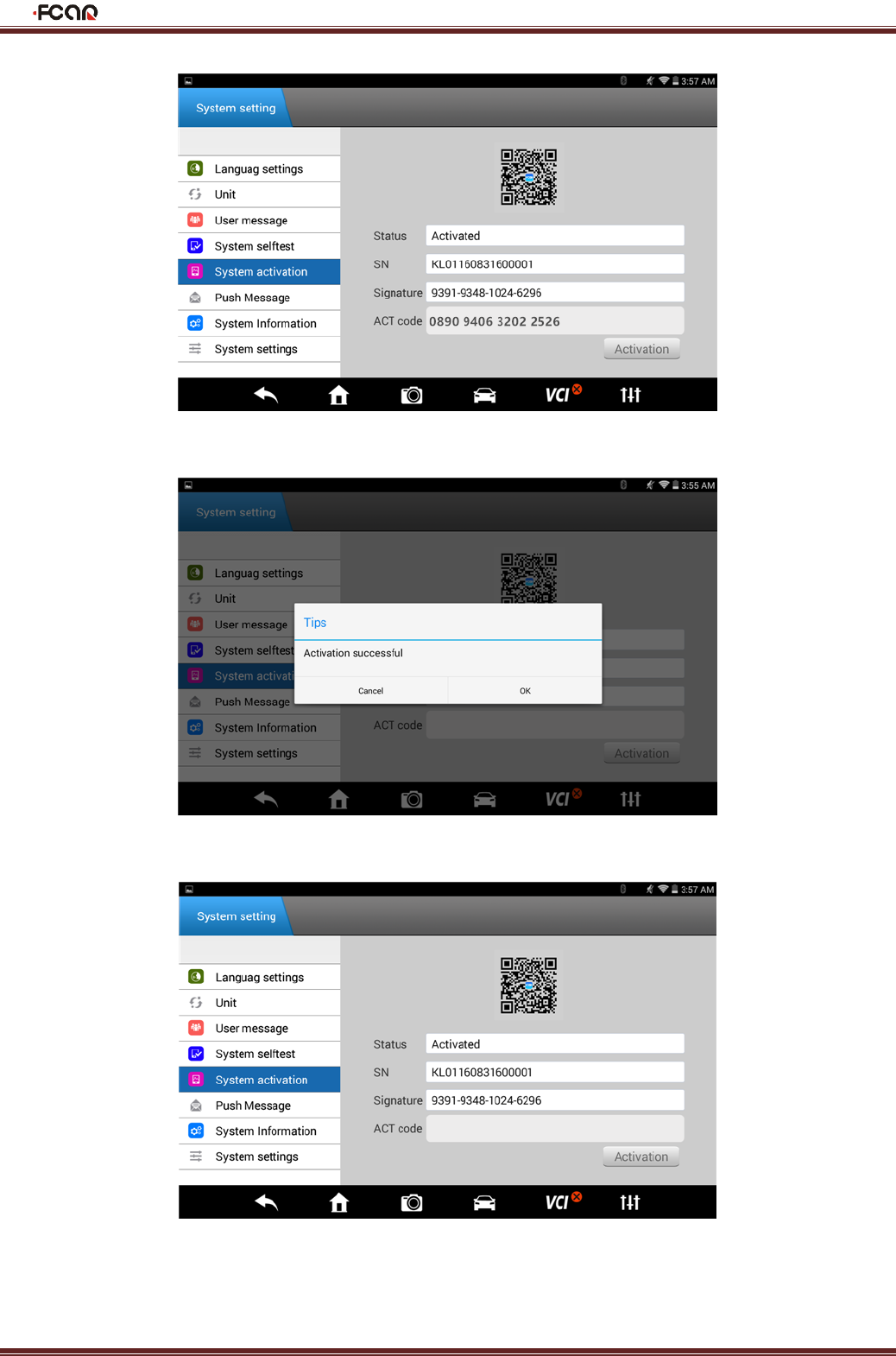 FCAR products are not permanently activated when left the factory. After you power on the machine and select models,