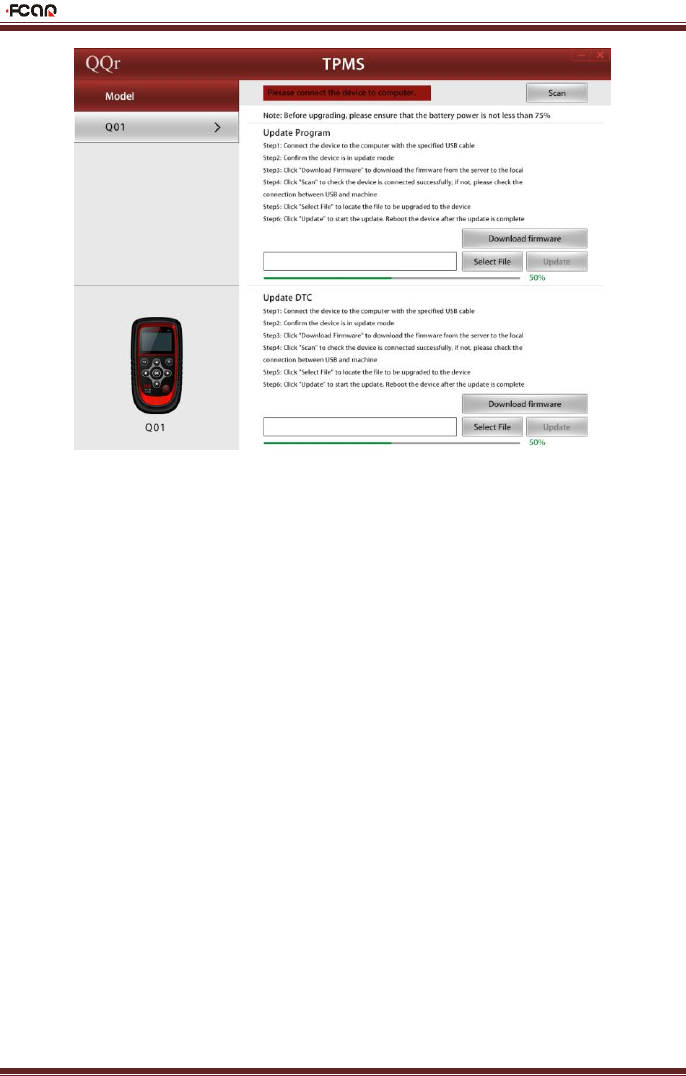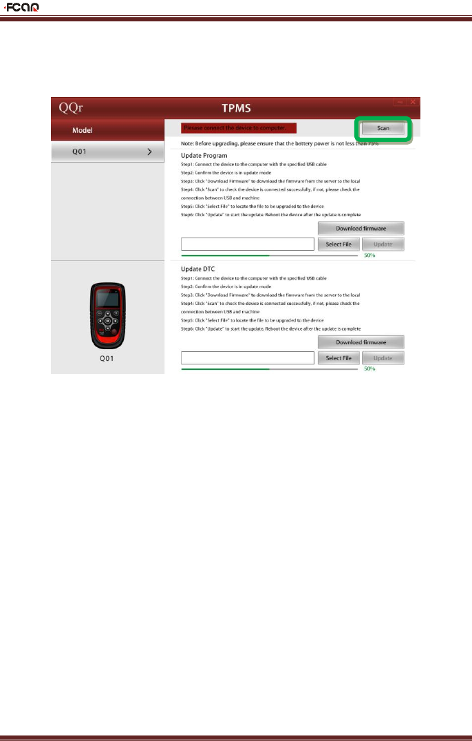 3) Click “Scan”, the PC update software will scan and check whether the FT-138 is