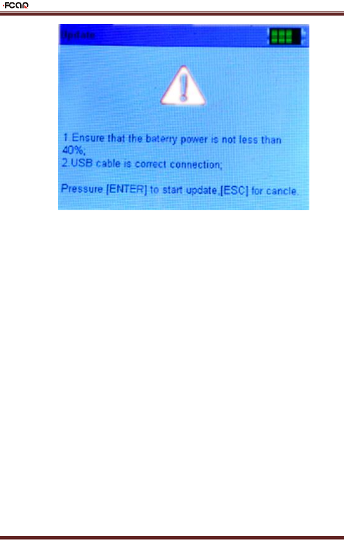 update icon on FT-138, press OK to confirm the device is in the update mode