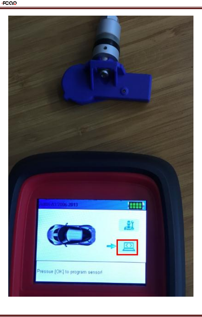3) Select the wheel, the top of FT-138 is aimed at the sensor, click [OK] to program the