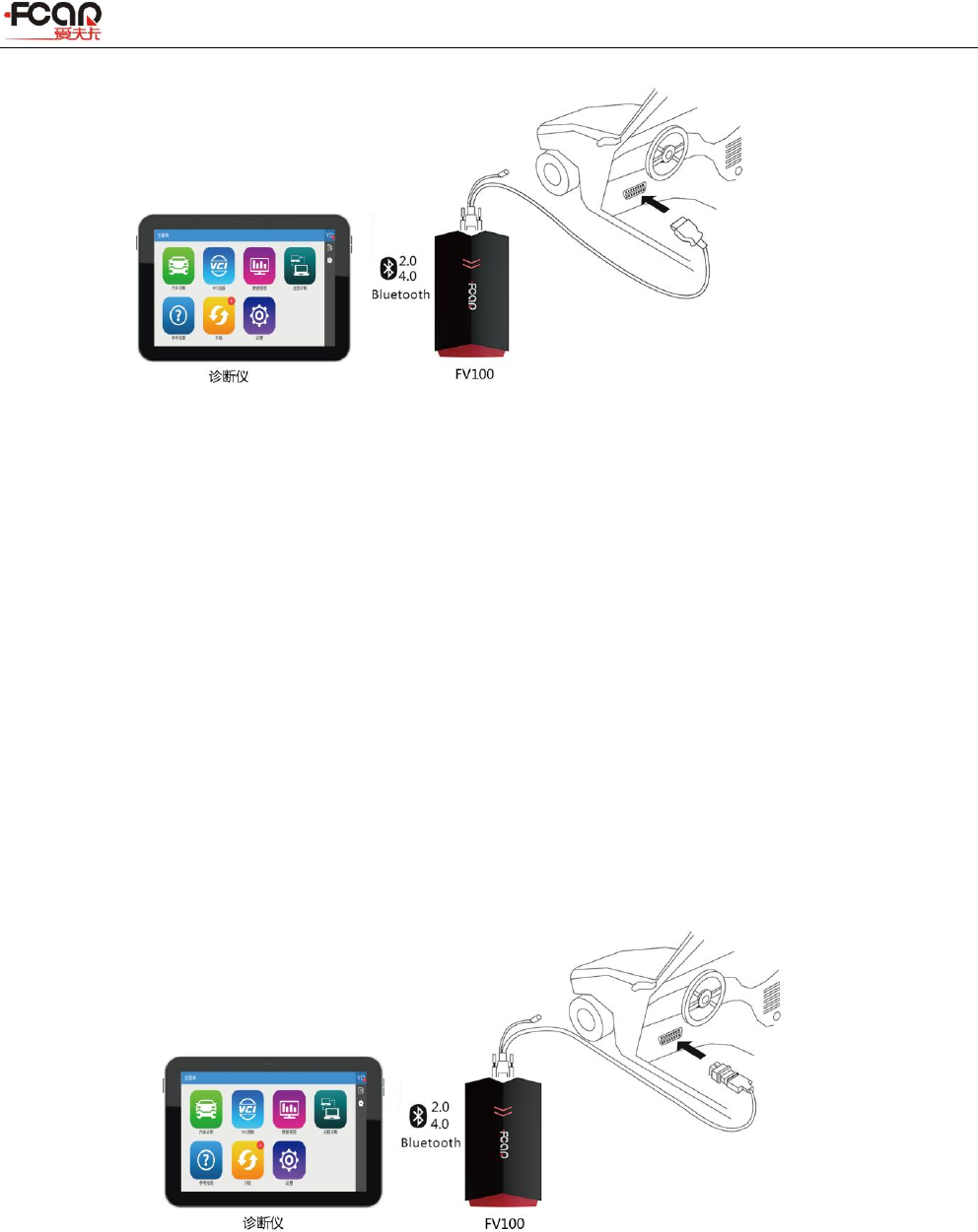 host and the FV100 before the vehicle diagnosis can be carried out; FV100 supports two ways to