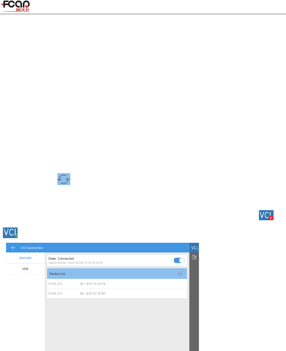 3) View the VCI connection status in the upper right corner of the screen ( see 3.2 ) , vehicle diagnostics can be
