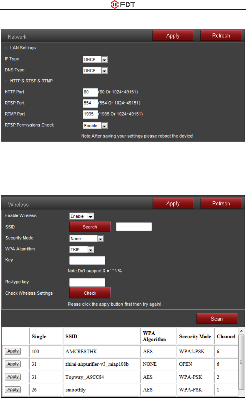 1. Please go to the CONFIG->Network->Wireless page through web browser, here is a