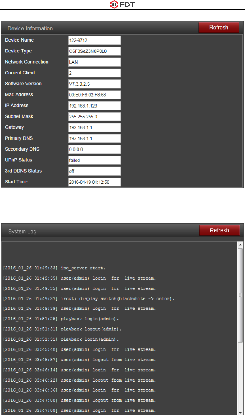 Here you can query and check the main information and status of the FDT camera,
