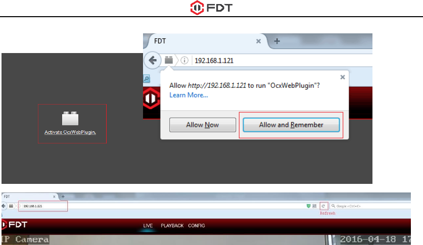 browser will prompt automatically to show you to allow the installing of the FDT camera