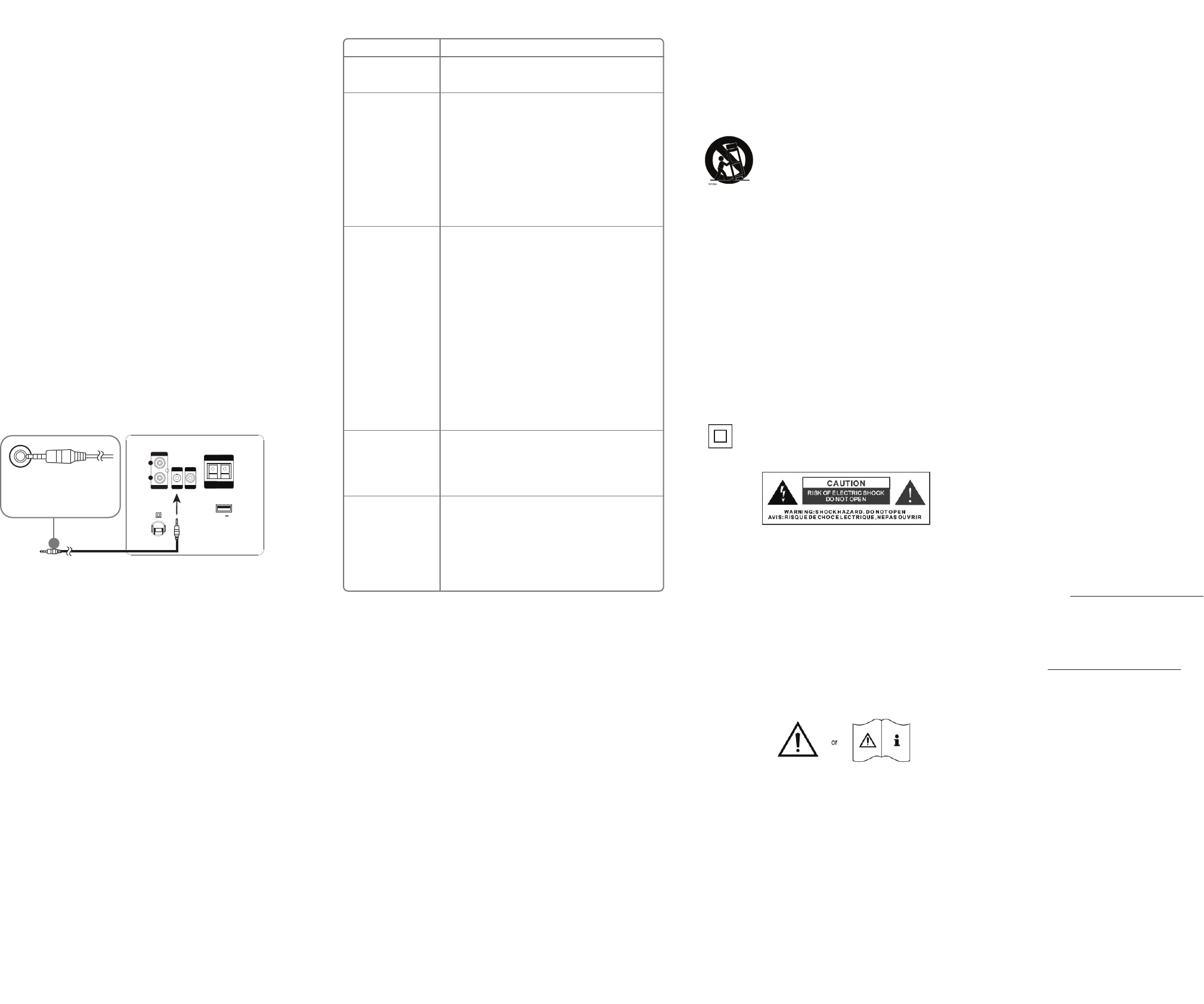 - Warning: To reduce the risk of electric shock, do not remove cover (or back) as