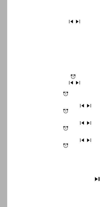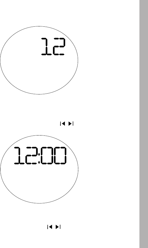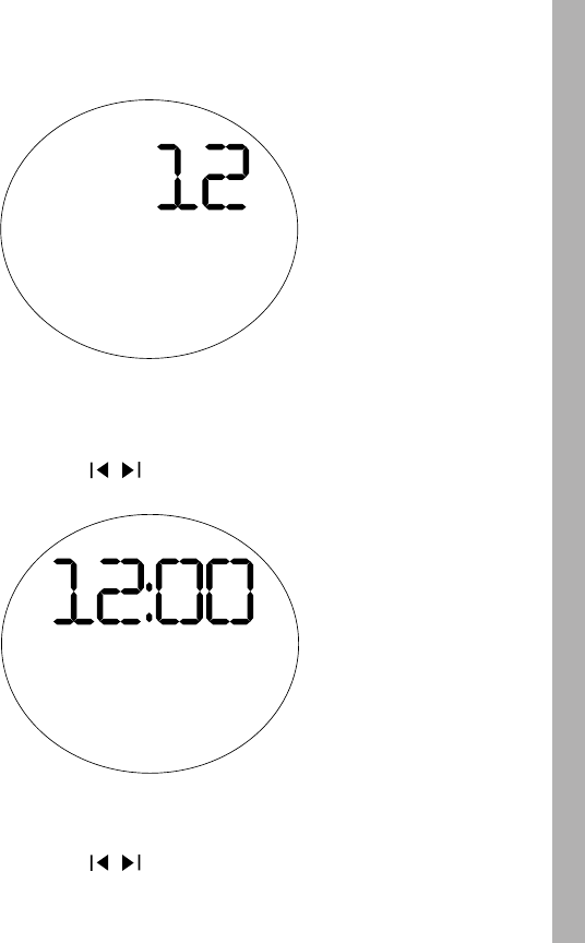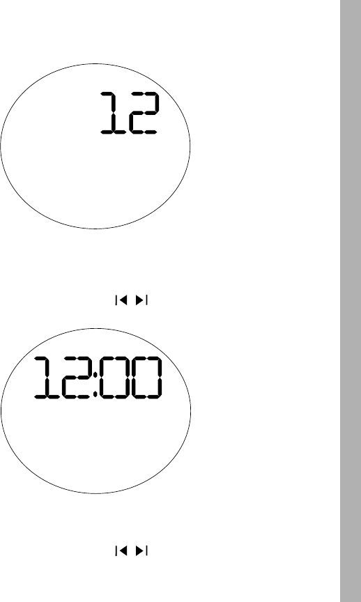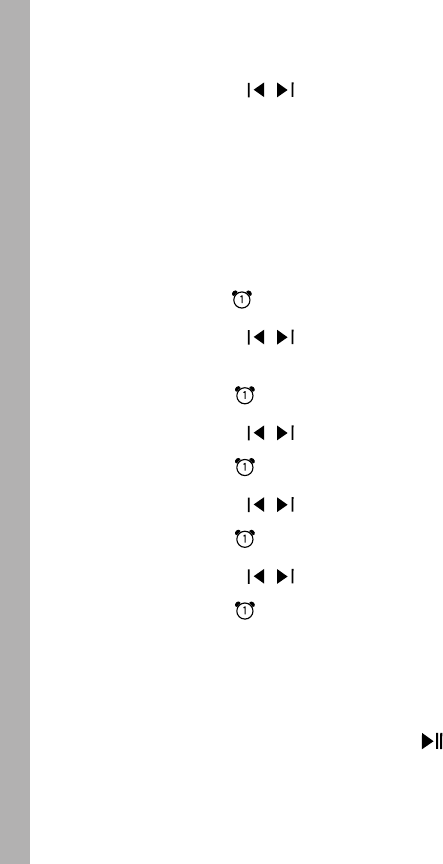 4.  Short press volume +/- or track   /   to choose the hour. (In the 12-hour format, continue