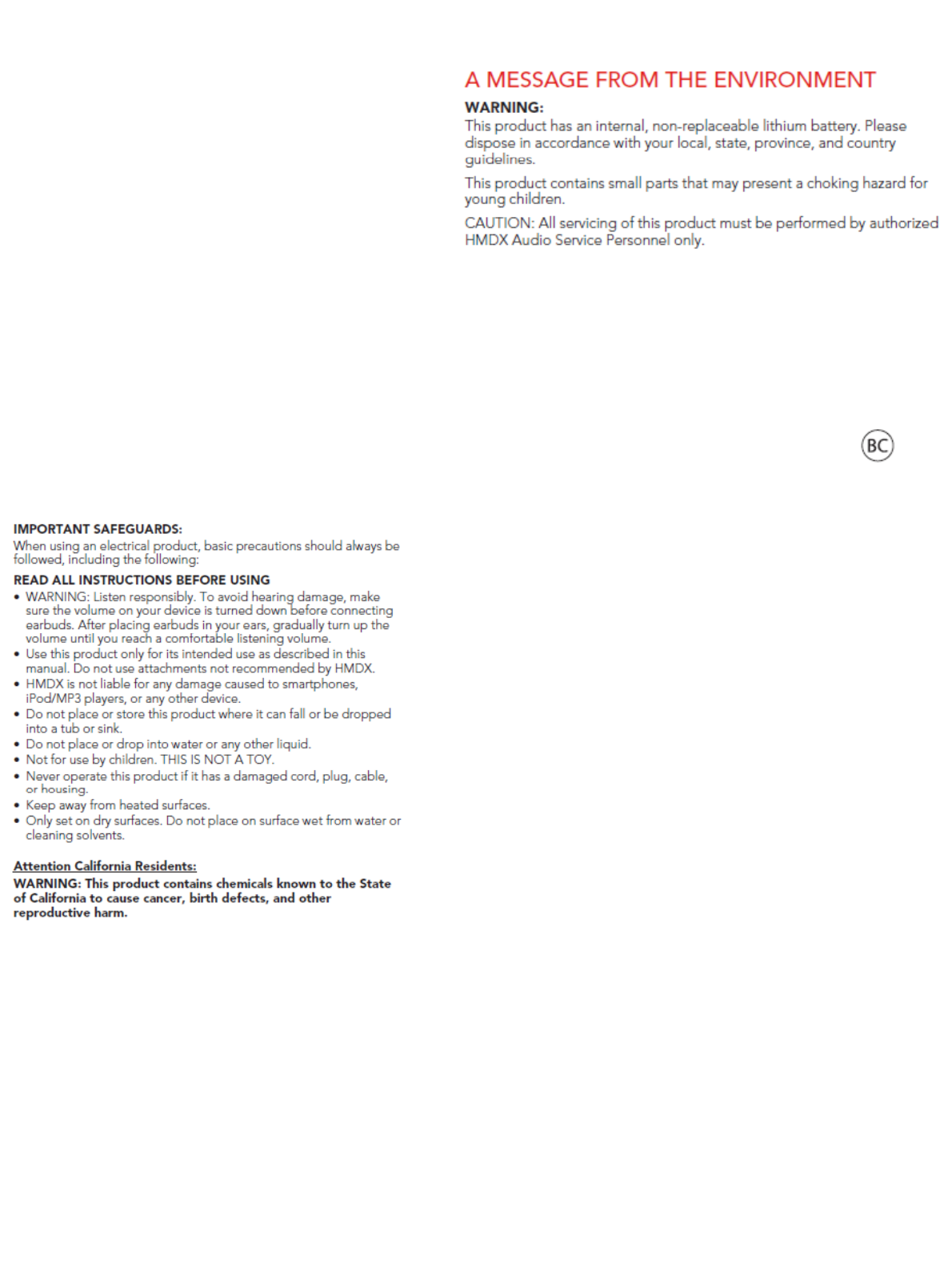 FKA Distributing HXEP230 Bluetooth Earphone User Manual