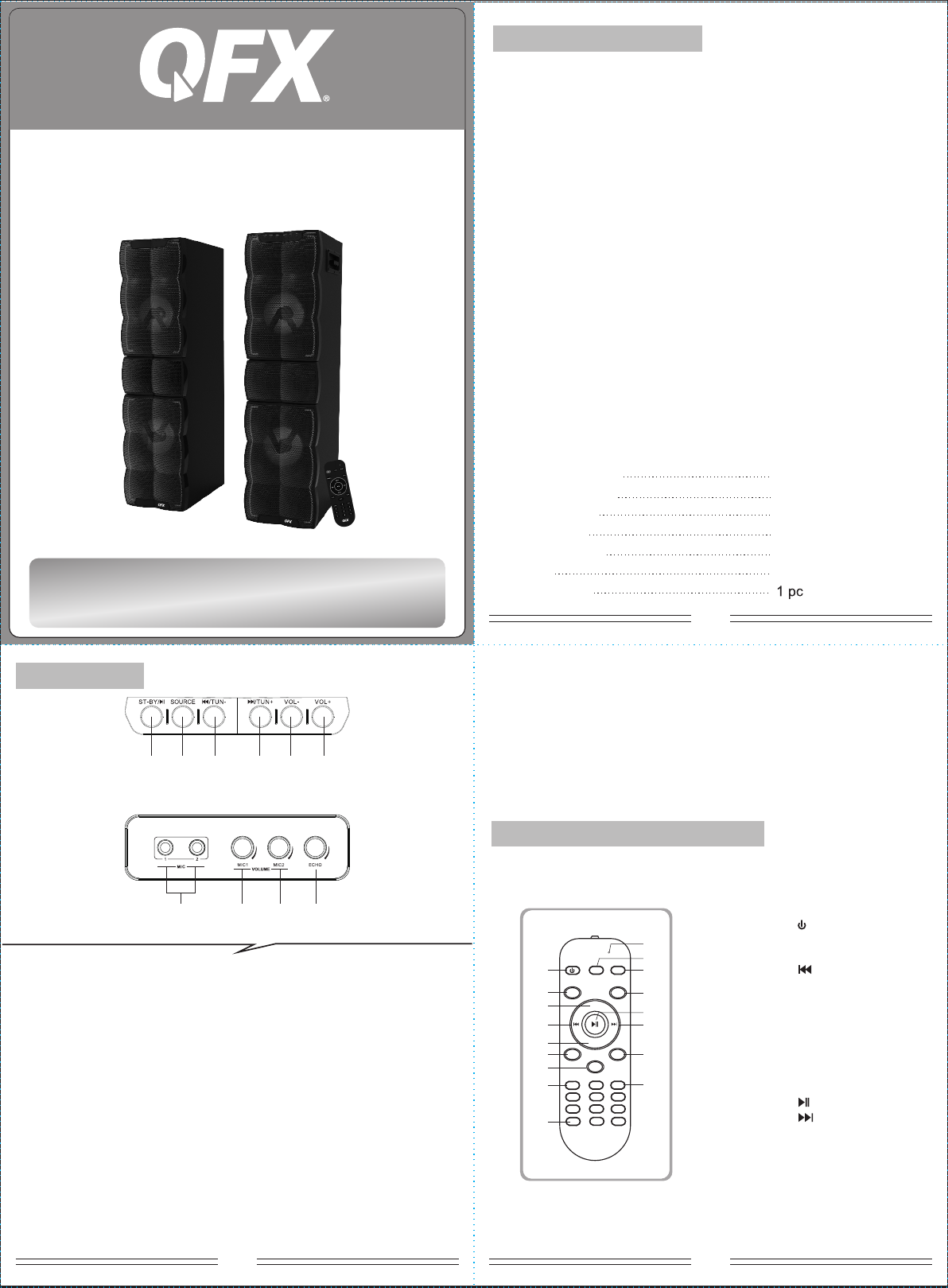 8. MIC1 VOLUME KNOB: If Wired MIC or Cordless MIC is ON then rotate the
