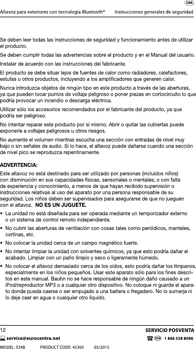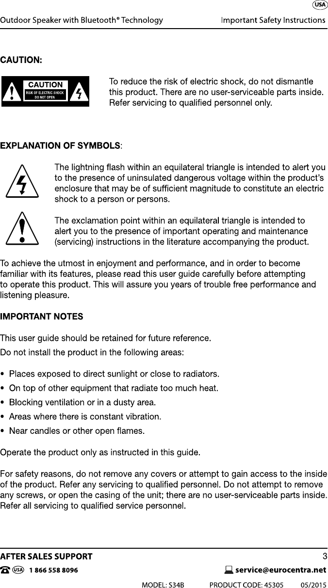 FLYBALL ELECTRONIC S34B Outdoor Bluetooth Speaker User Manual