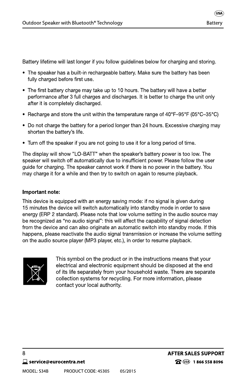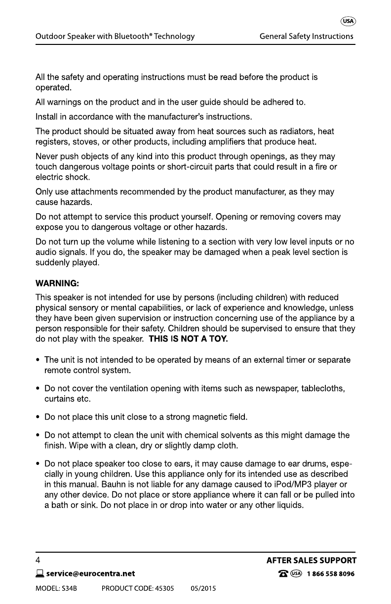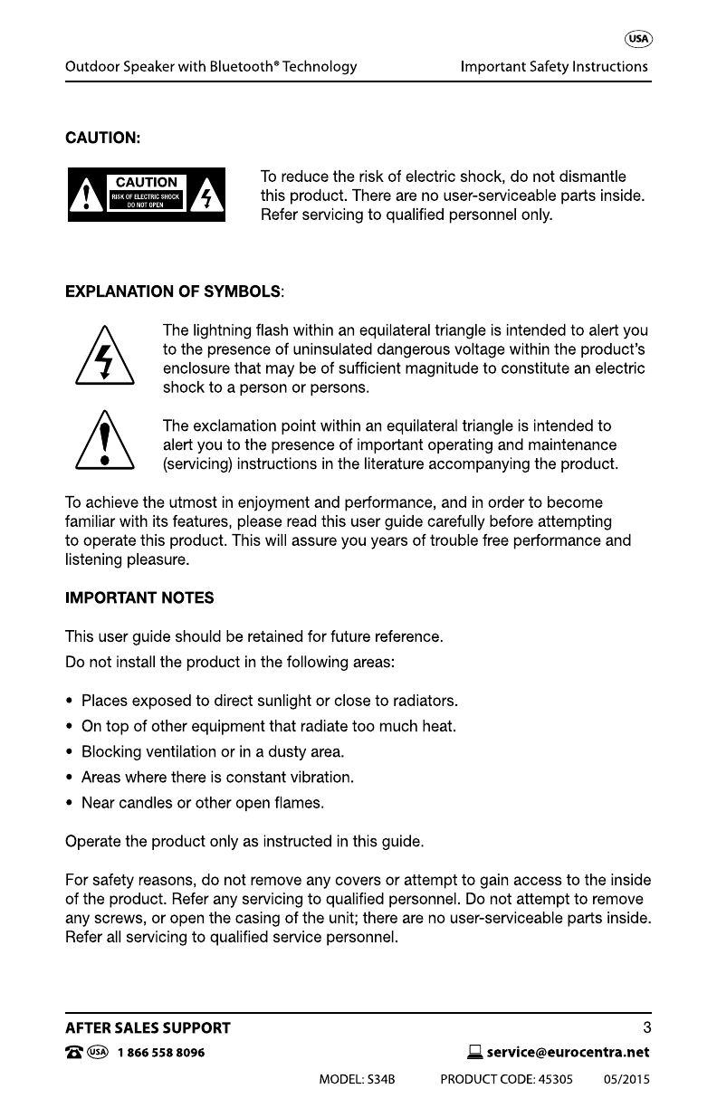 FLYBALL ELECTRONIC S34B Outdoor Bluetooth Speaker User Manual