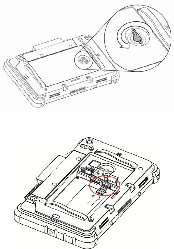 1. Loosen the pen screw counter-clockwise on the battery cover.