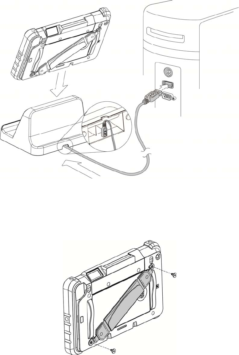 1. Attach the hand strap to the back of the system and fasten the screws (x2)