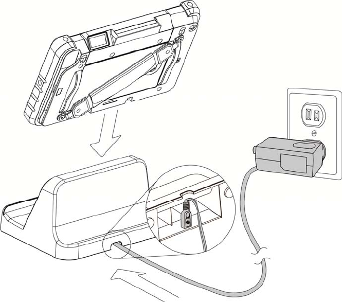 1. Connect the USB-AC adapter to the connector on the bottom of the cradle
