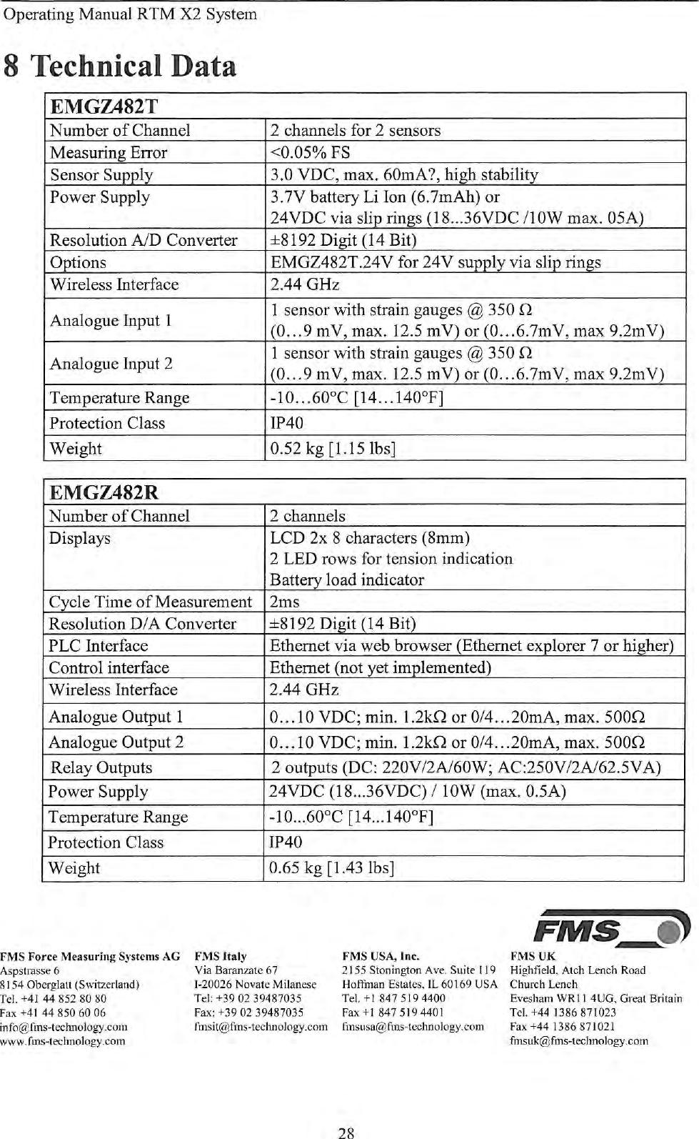FMS Force Measurnig Systems EMGZ482R Radio Transmitted Tension Monitoring System - Control Unit User Manual