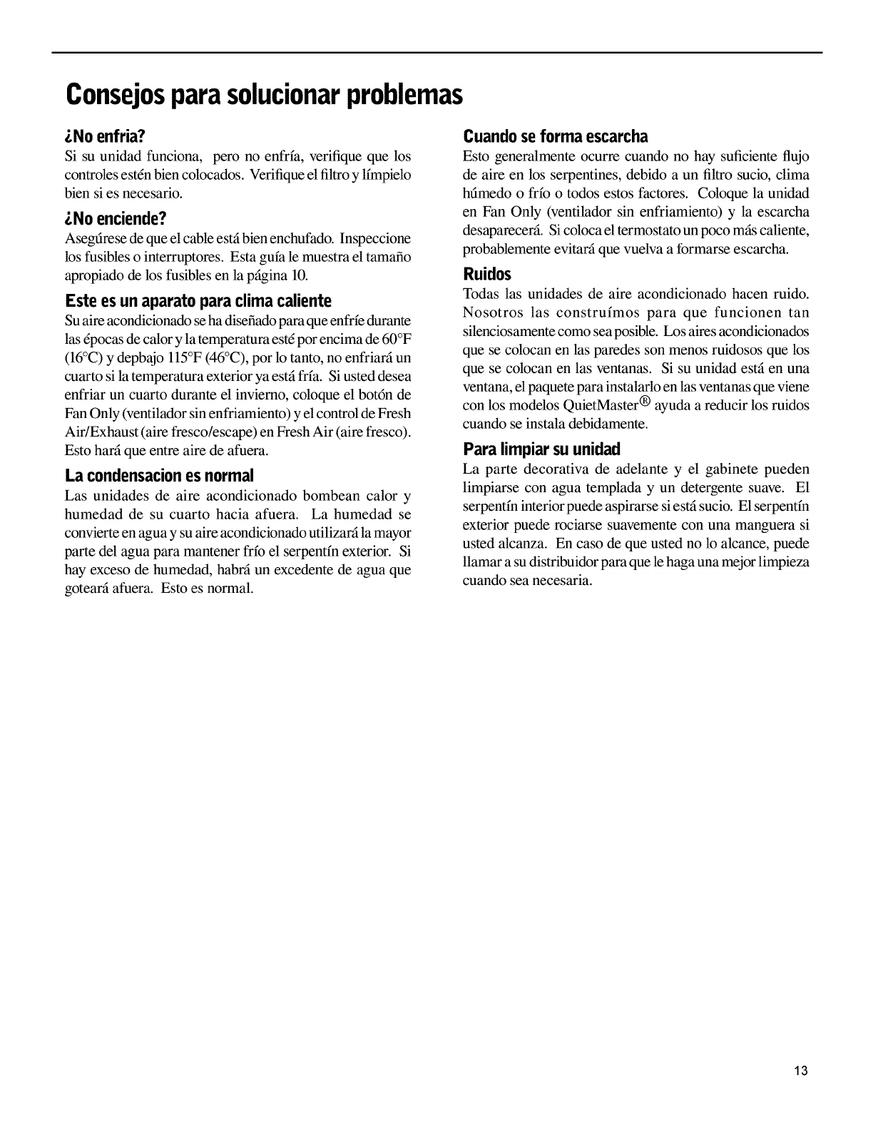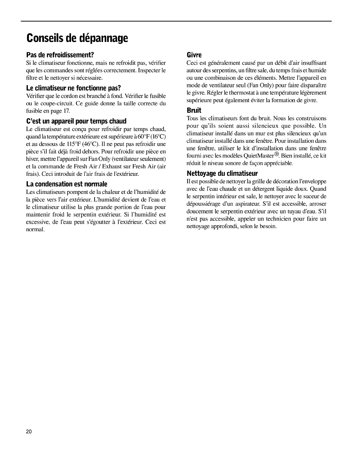 et au dessous de l15°F (46°C). I1 ne peut pas refroidir une