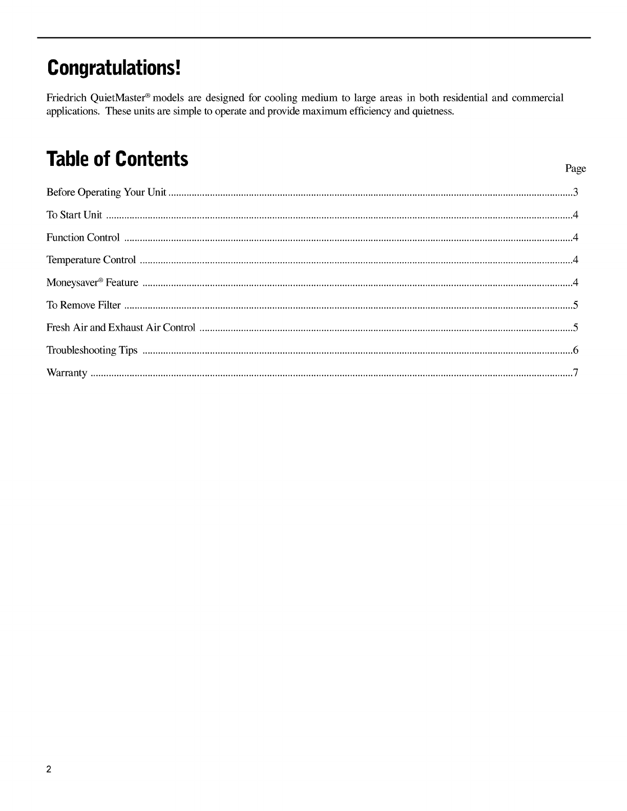 FRIEDRICH Air Conditioner Room (42) Manual L0404280